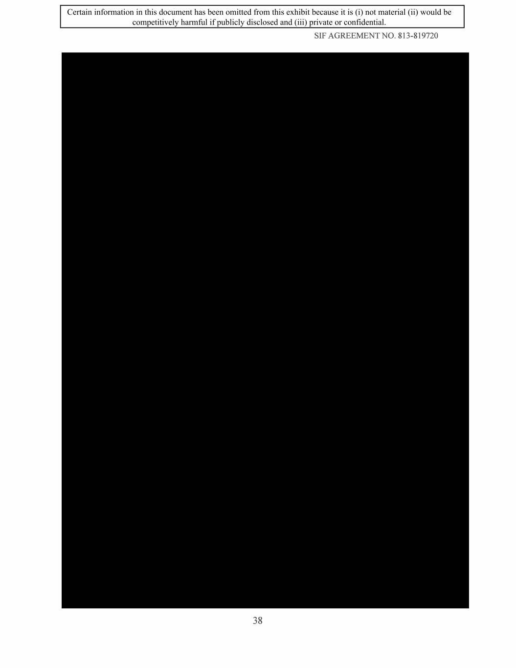 SIF AGREEMENT NO. 813-819720 38 Certain information in this document has been omitted from this exhibit because it is (i) not material (ii) would be competitively harmful if publicly disclosed and (iii) private or confidential.