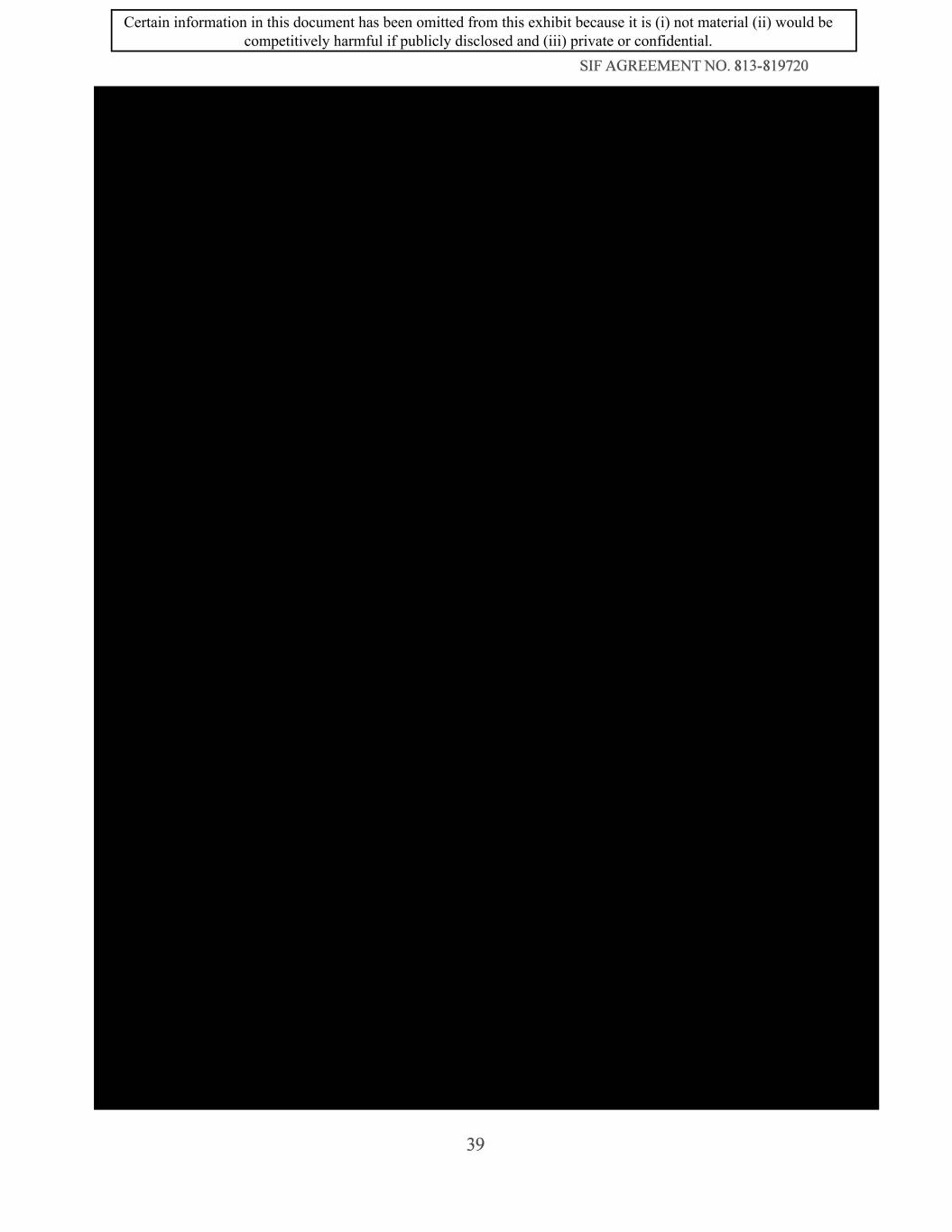 SIF AGREEMENT NO. 813-819720 39 Certain information in this document has been omitted from this exhibit because it is (i) not material (ii) would be competitively harmful if publicly disclosed and (iii) private or confidential.