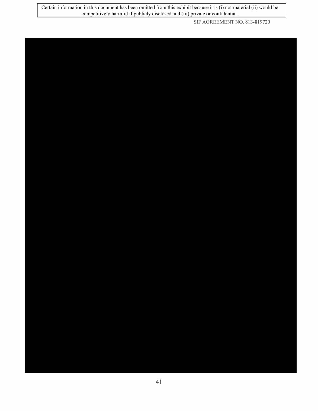 SIF AGREEMENT NO. 813-819720 41 Certain information in this document has been omitted from this exhibit because it is (i) not material (ii) would be competitively harmful if publicly disclosed and (iii) private or confidential.
