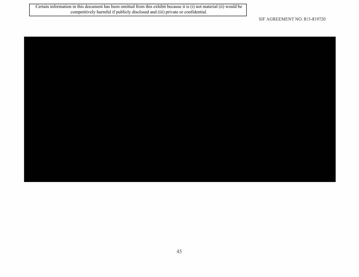SIF AGREEMENT NO. 813-819720 45 Certain information in this document has been omitted from this exhibit because it is (i) not material (ii) would be competitively harmful if publicly disclosed and (iii) private or confidential.