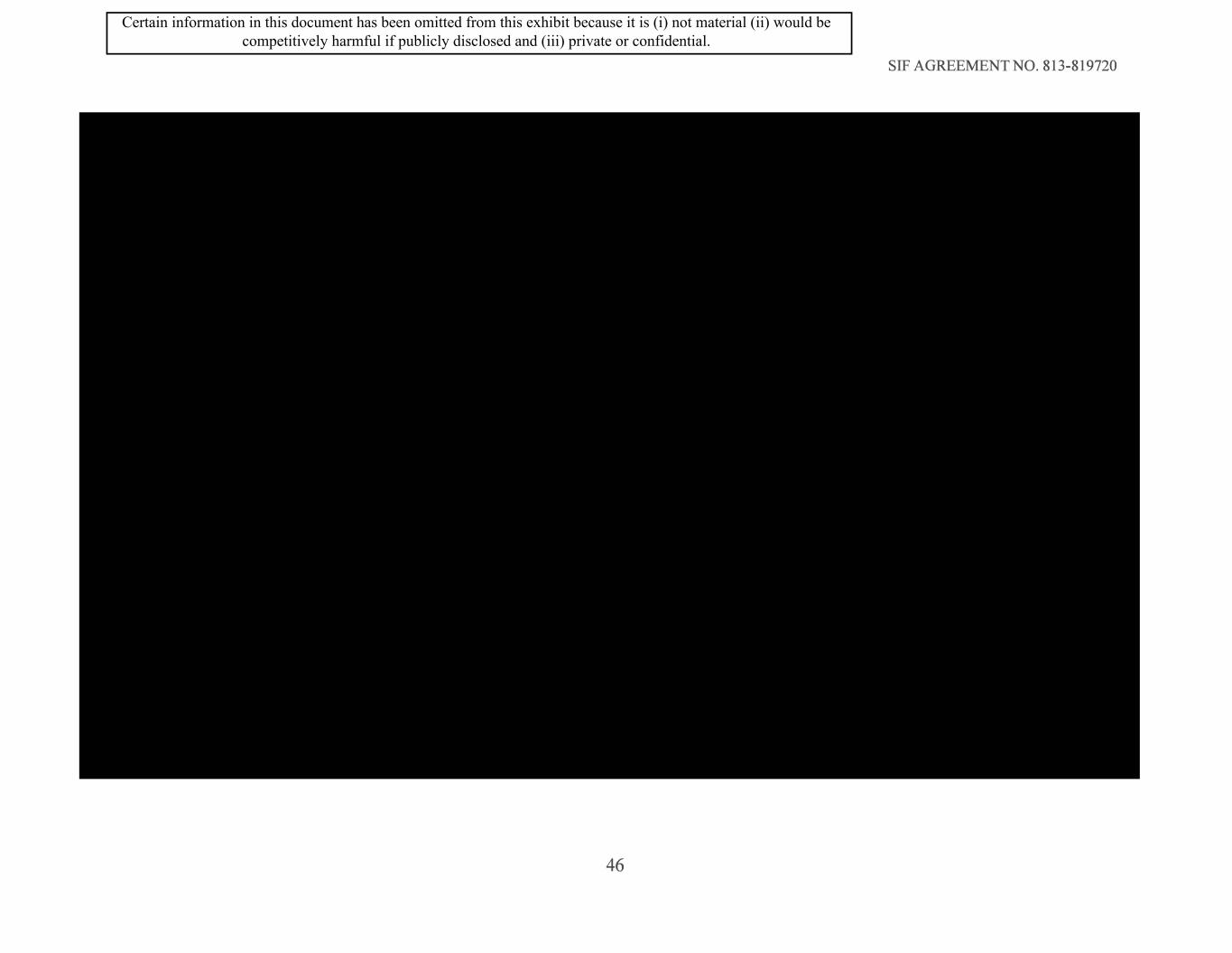SIF AGREEMENT NO. 813-819720 46 Certain information in this document has been omitted from this exhibit because it is (i) not material (ii) would be competitively harmful if publicly disclosed and (iii) private or confidential.