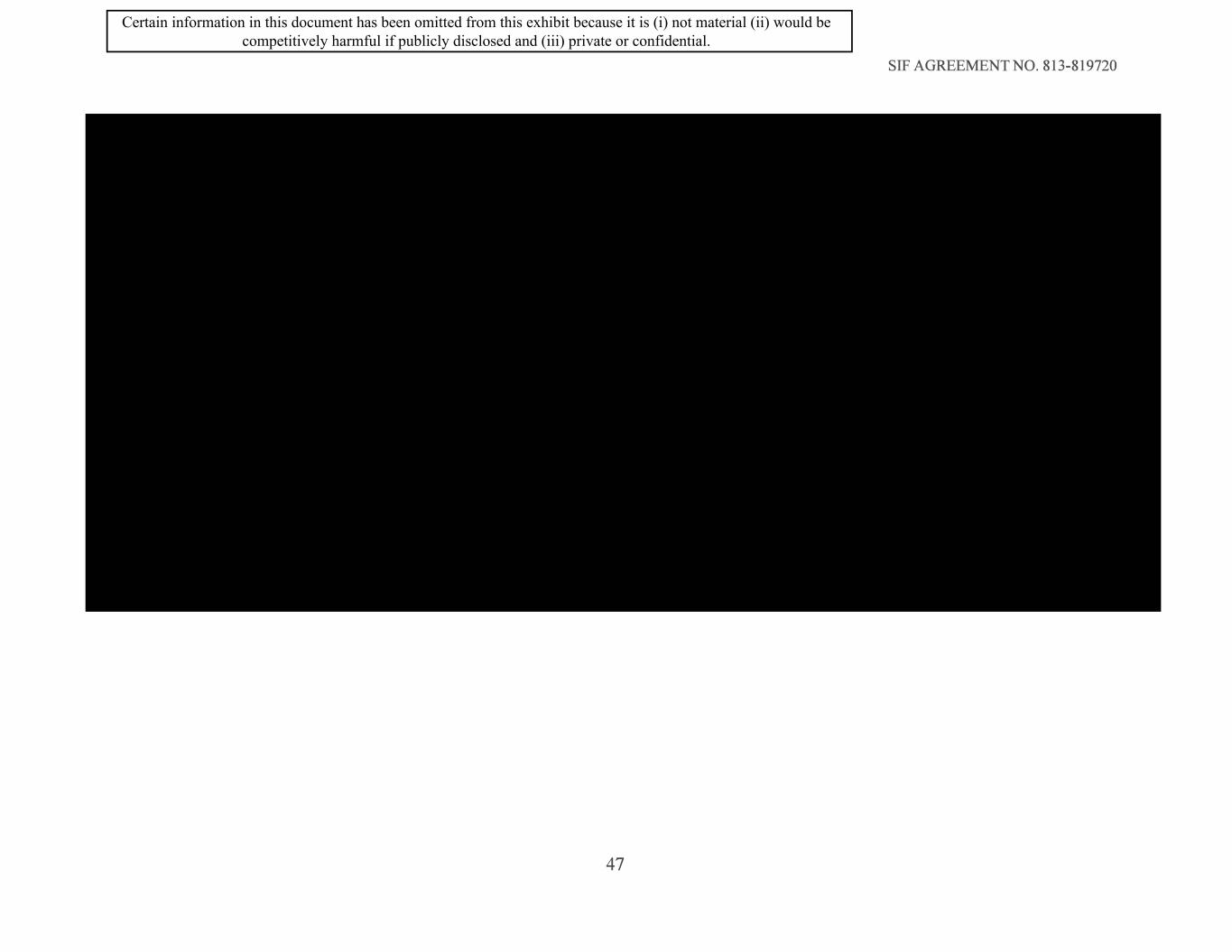 SIF AGREEMENT NO. 813-819720 47 Certain information in this document has been omitted from this exhibit because it is (i) not material (ii) would be competitively harmful if publicly disclosed and (iii) private or confidential.