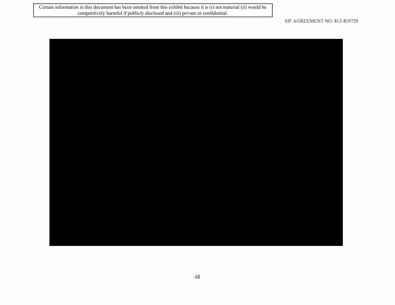 SIF AGREEMENT NO. 813-819720 48 Certain information in this document has been omitted from this exhibit because it is (i) not material (ii) would be competitively harmful if publicly disclosed and (iii) private or confidential.