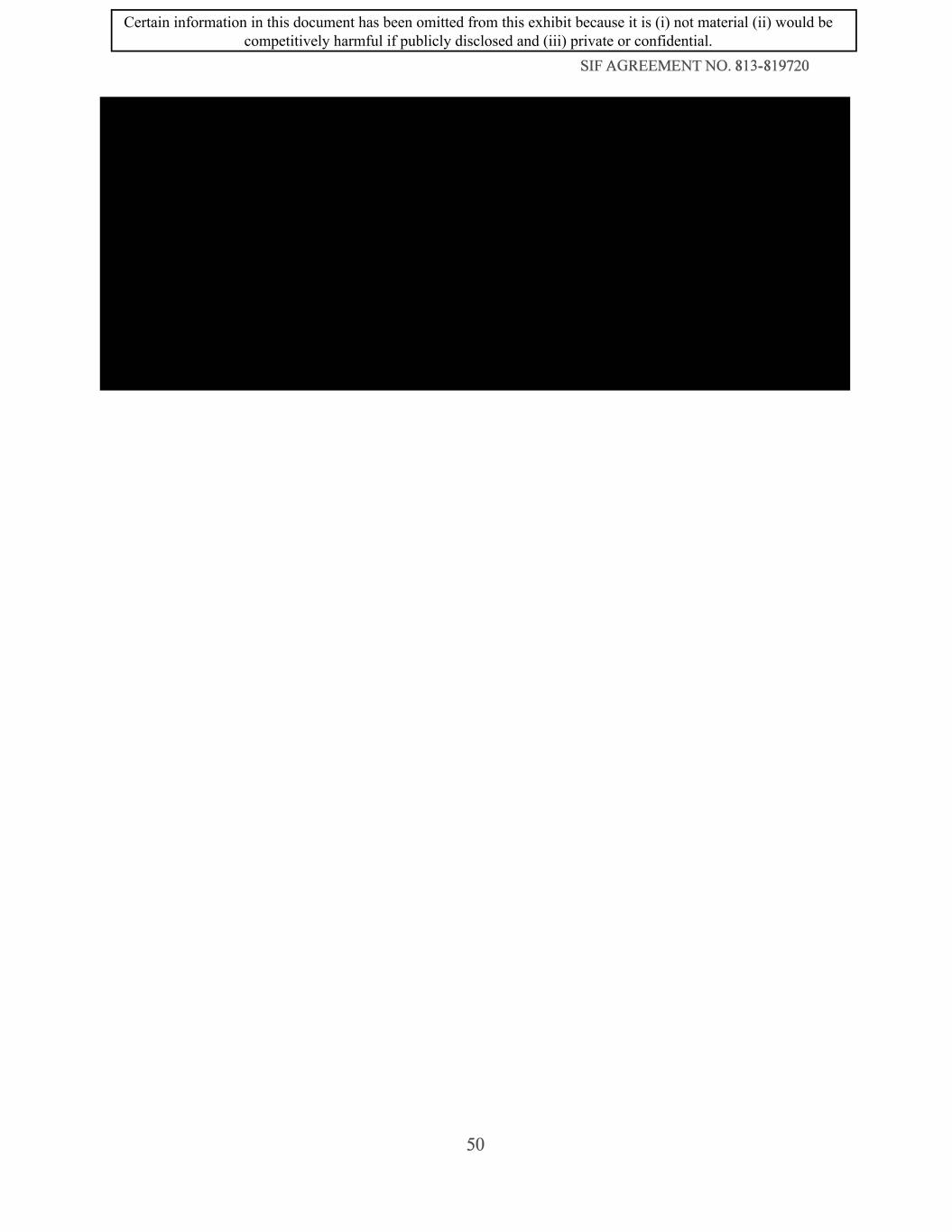 SIF AGREEMENT NO. 813-819720 50 Certain information in this document has been omitted from this exhibit because it is (i) not material (ii) would be competitively harmful if publicly disclosed and (iii) private or confidential.