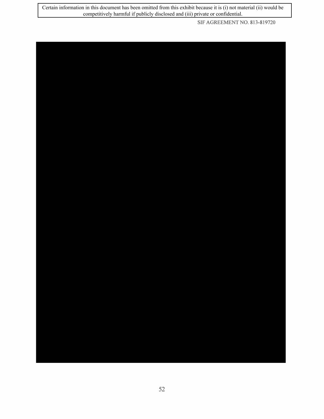SIF AGREEMENT NO. 813-819720 52 Certain information in this document has been omitted from this exhibit because it is (i) not material (ii) would be competitively harmful if publicly disclosed and (iii) private or confidential.