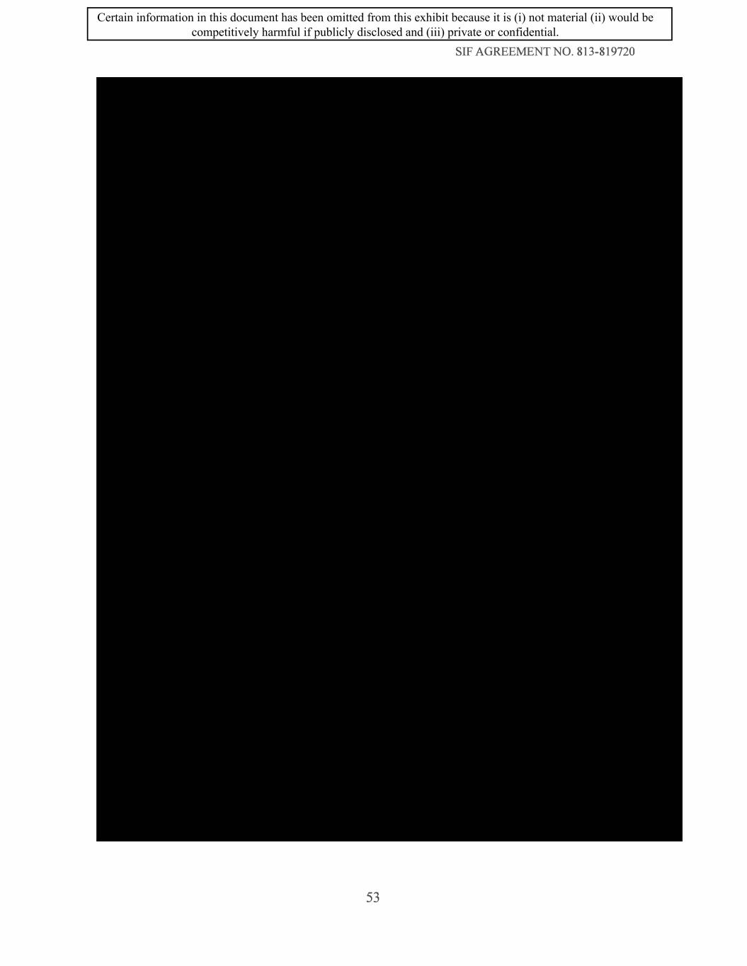SIF AGREEMENT NO. 813-819720 53 Certain information in this document has been omitted from this exhibit because it is (i) not material (ii) would be competitively harmful if publicly disclosed and (iii) private or confidential.