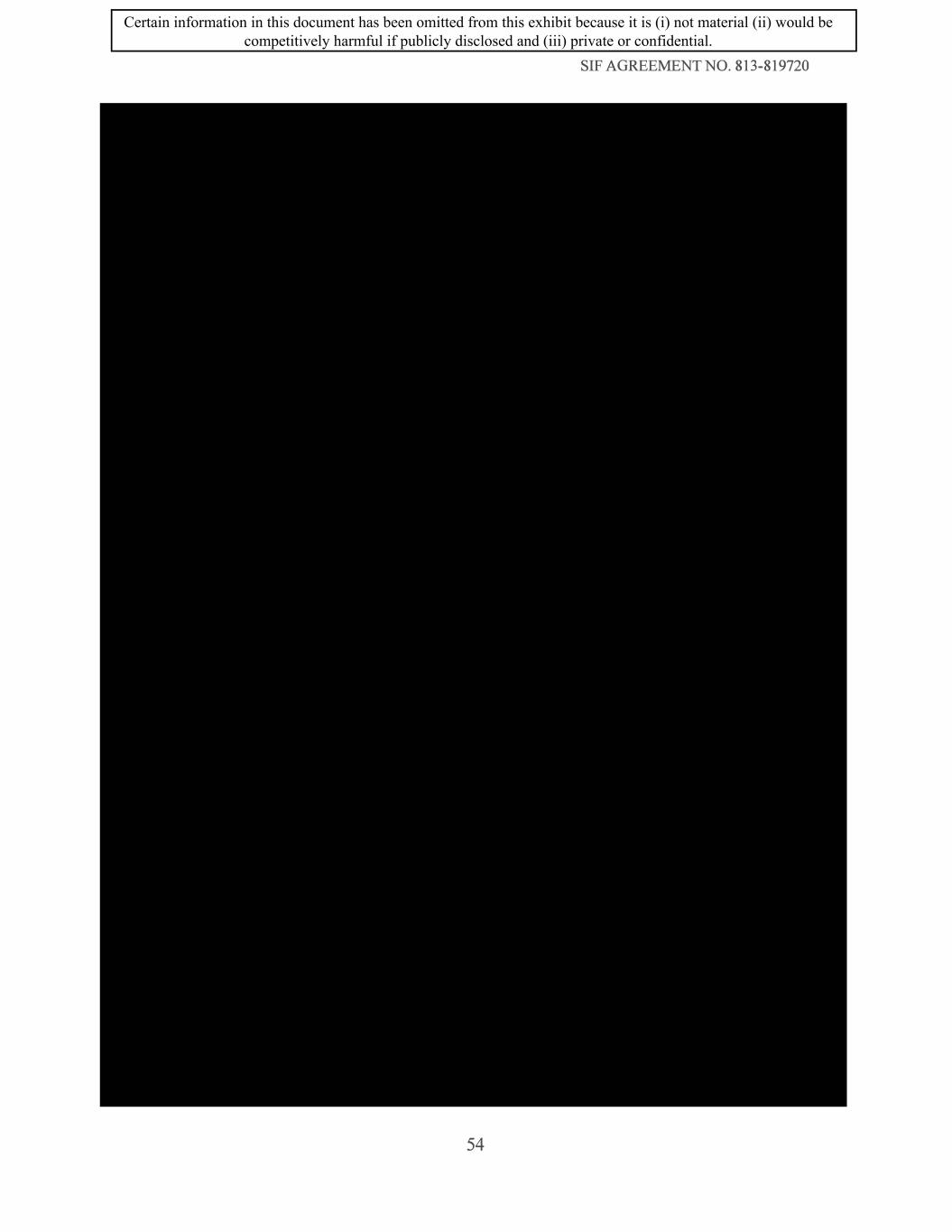 SIF AGREEMENT NO. 813-819720 54 Certain information in this document has been omitted from this exhibit because it is (i) not material (ii) would be competitively harmful if publicly disclosed and (iii) private or confidential.