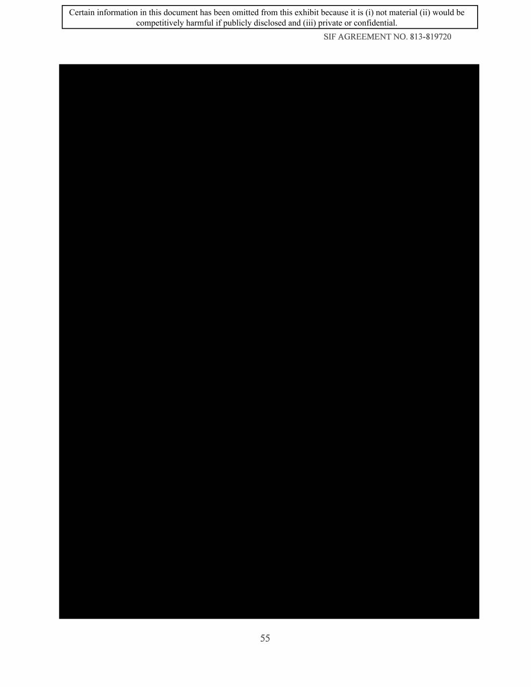 SIF AGREEMENT NO. 813-819720 55 Certain information in this document has been omitted from this exhibit because it is (i) not material (ii) would be competitively harmful if publicly disclosed and (iii) private or confidential.