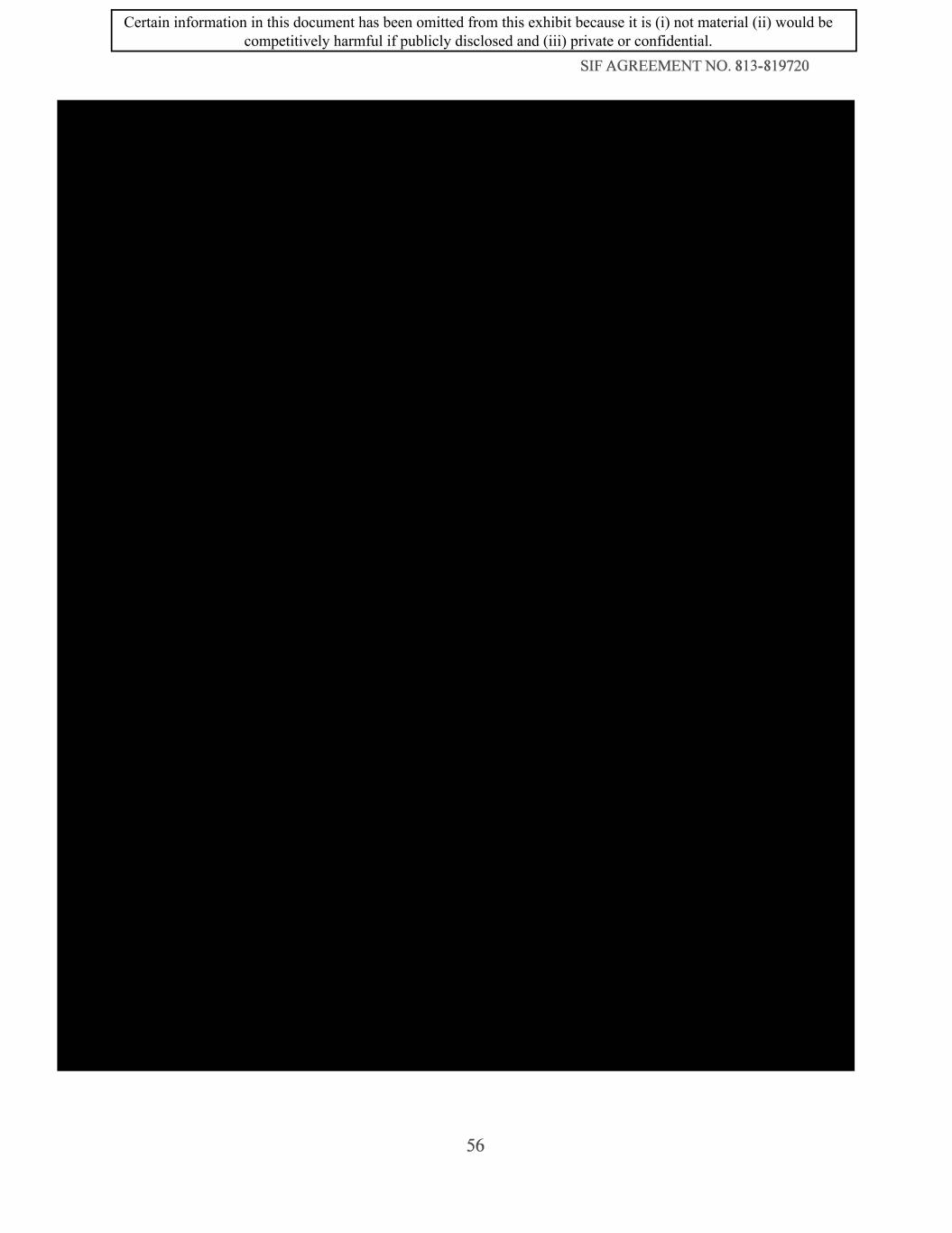 SIF AGREEMENT NO. 813-819720 56 Certain information in this document has been omitted from this exhibit because it is (i) not material (ii) would be competitively harmful if publicly disclosed and (iii) private or confidential.