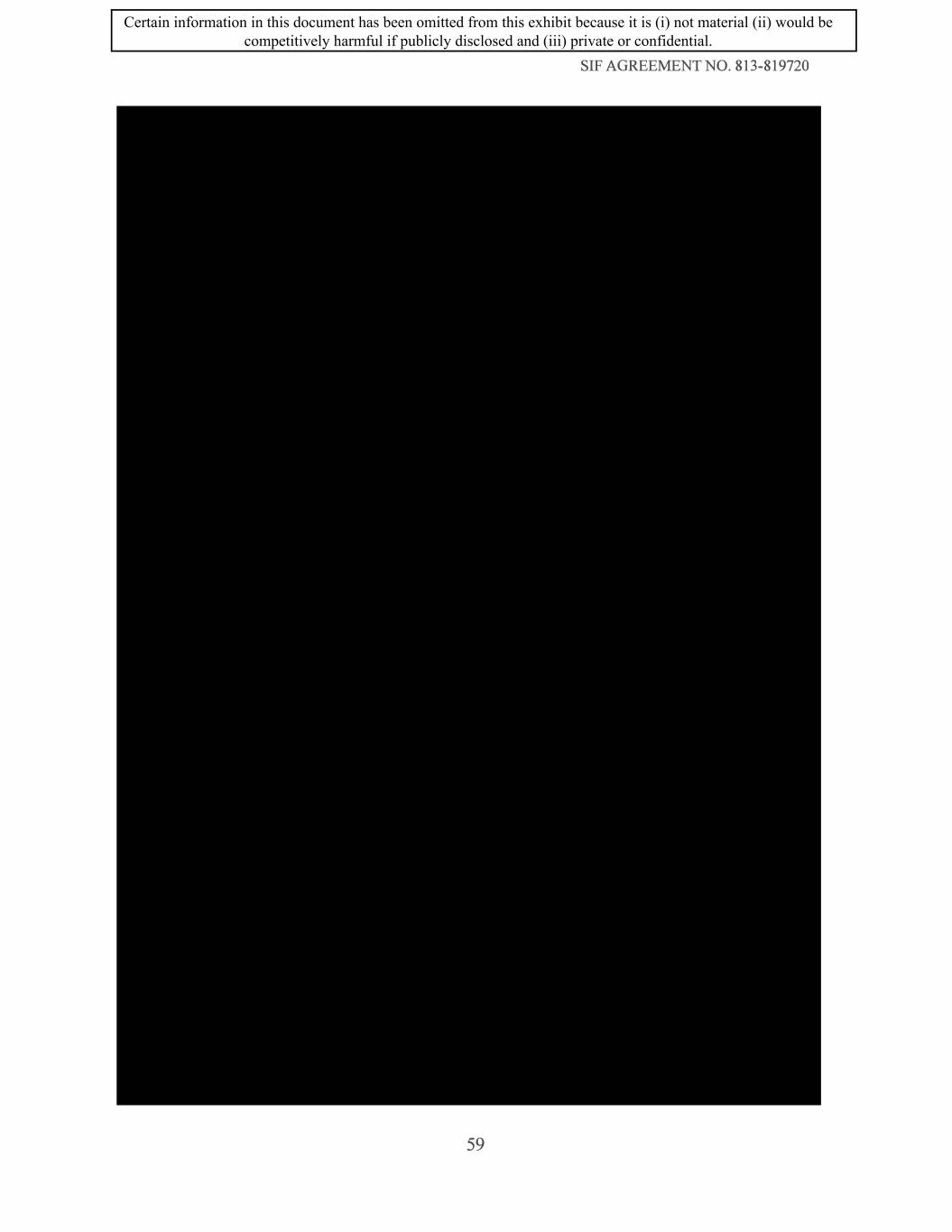 SIF AGREEMENT NO. 813-819720 59 Certain information in this document has been omitted from this exhibit because it is (i) not material (ii) would be competitively harmful if publicly disclosed and (iii) private or confidential.