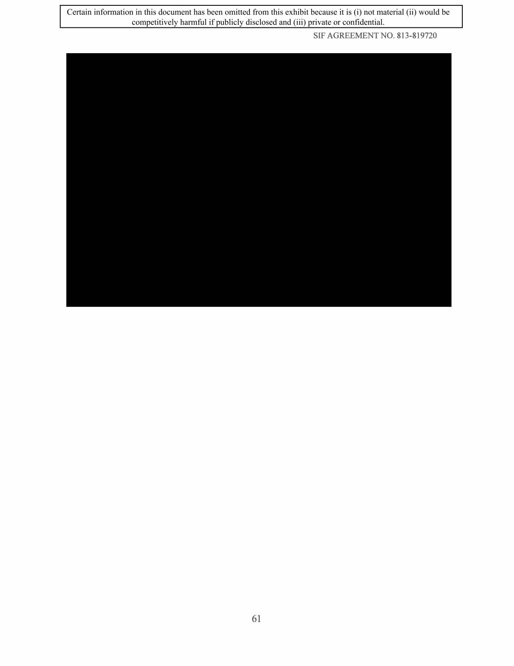 SIF AGREEMENT NO. 813-819720 61 Certain information in this document has been omitted from this exhibit because it is (i) not material (ii) would be competitively harmful if publicly disclosed and (iii) private or confidential.