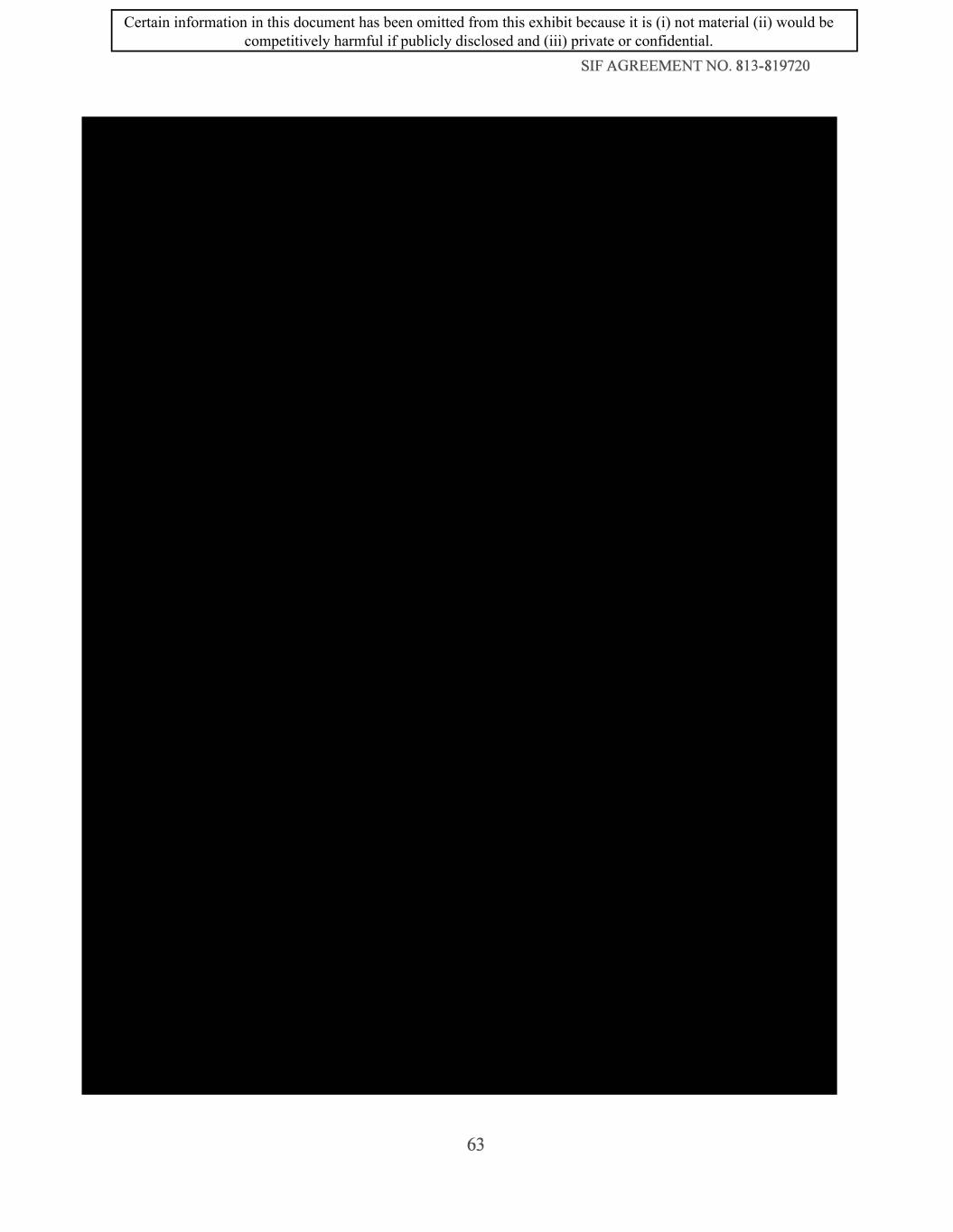 SIF AGREEMENT NO. 813-819720 63 Certain information in this document has been omitted from this exhibit because it is (i) not material (ii) would be competitively harmful if publicly disclosed and (iii) private or confidential.