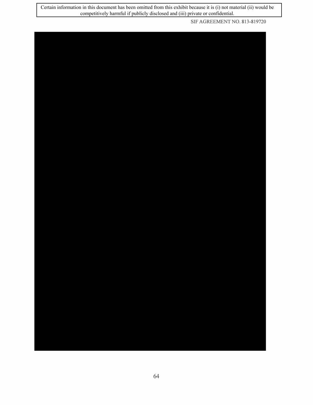 SIF AGREEMENT NO. 813-819720 64 Certain information in this document has been omitted from this exhibit because it is (i) not material (ii) would be competitively harmful if publicly disclosed and (iii) private or confidential.