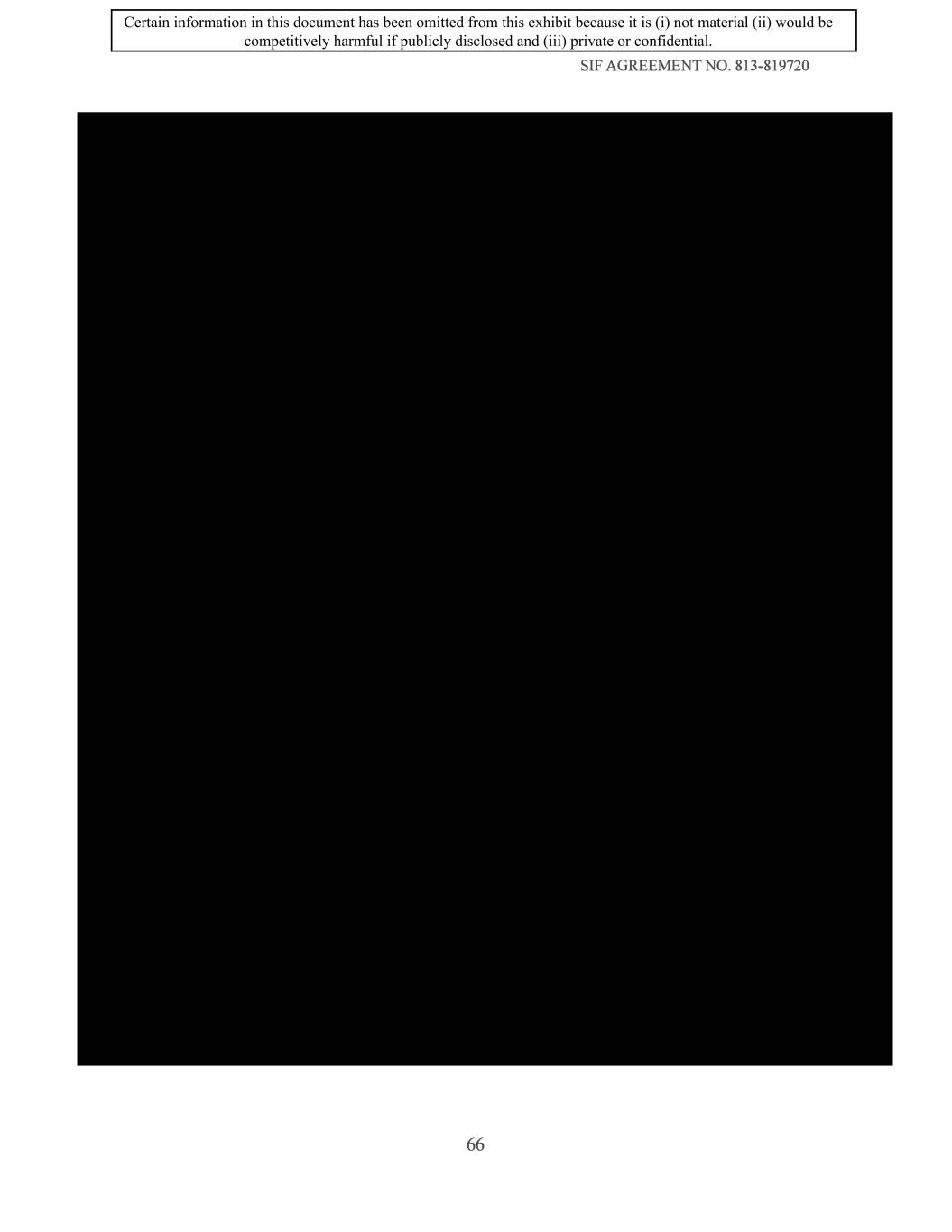 SIF AGREEMENT NO. 813-819720 66 Certain information in this document has been omitted from this exhibit because it is (i) not material (ii) would be competitively harmful if publicly disclosed and (iii) private or confidential.