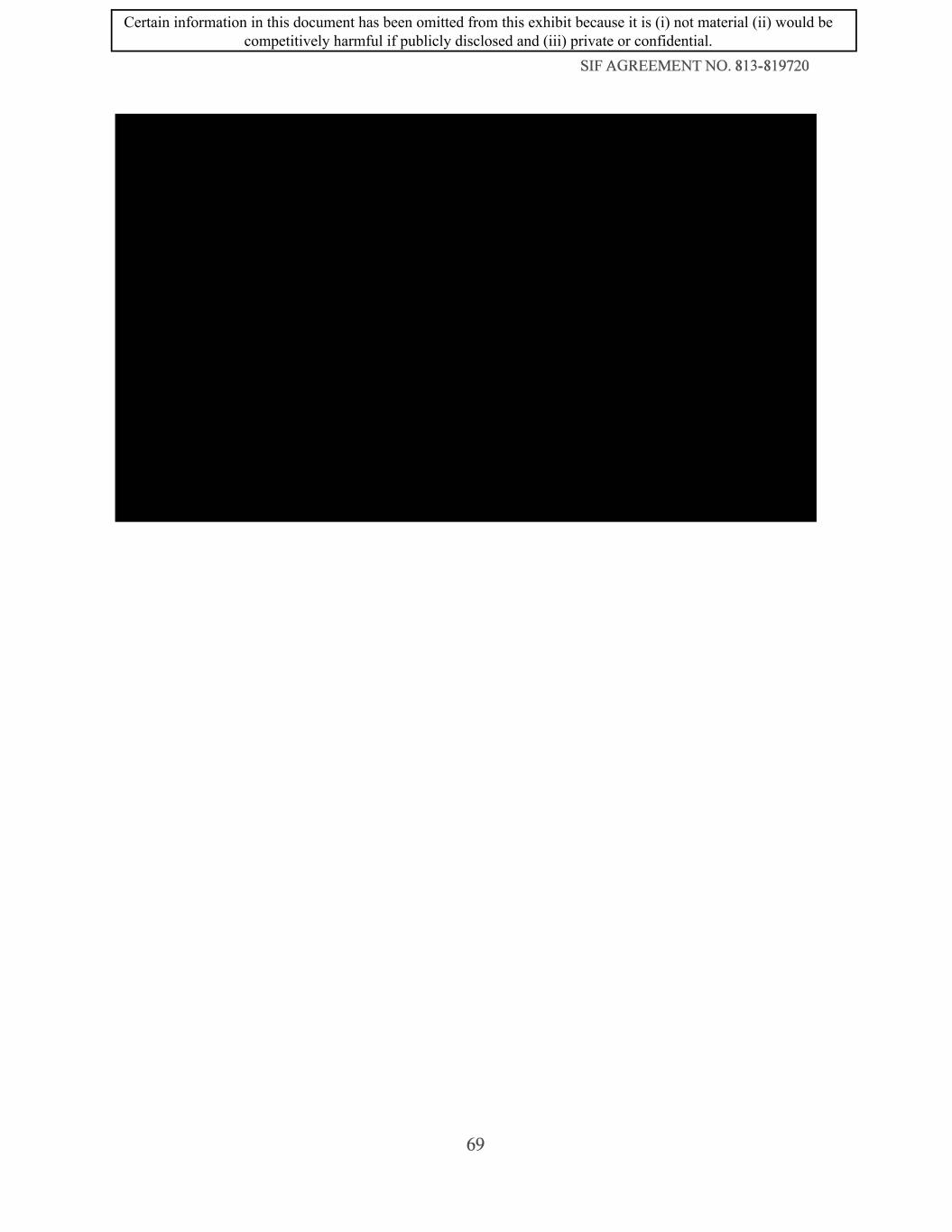 SIF AGREEMENT NO. 813-819720 69 Certain information in this document has been omitted from this exhibit because it is (i) not material (ii) would be competitively harmful if publicly disclosed and (iii) private or confidential.