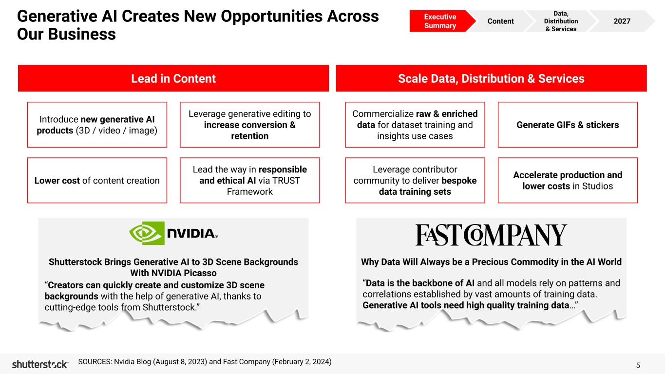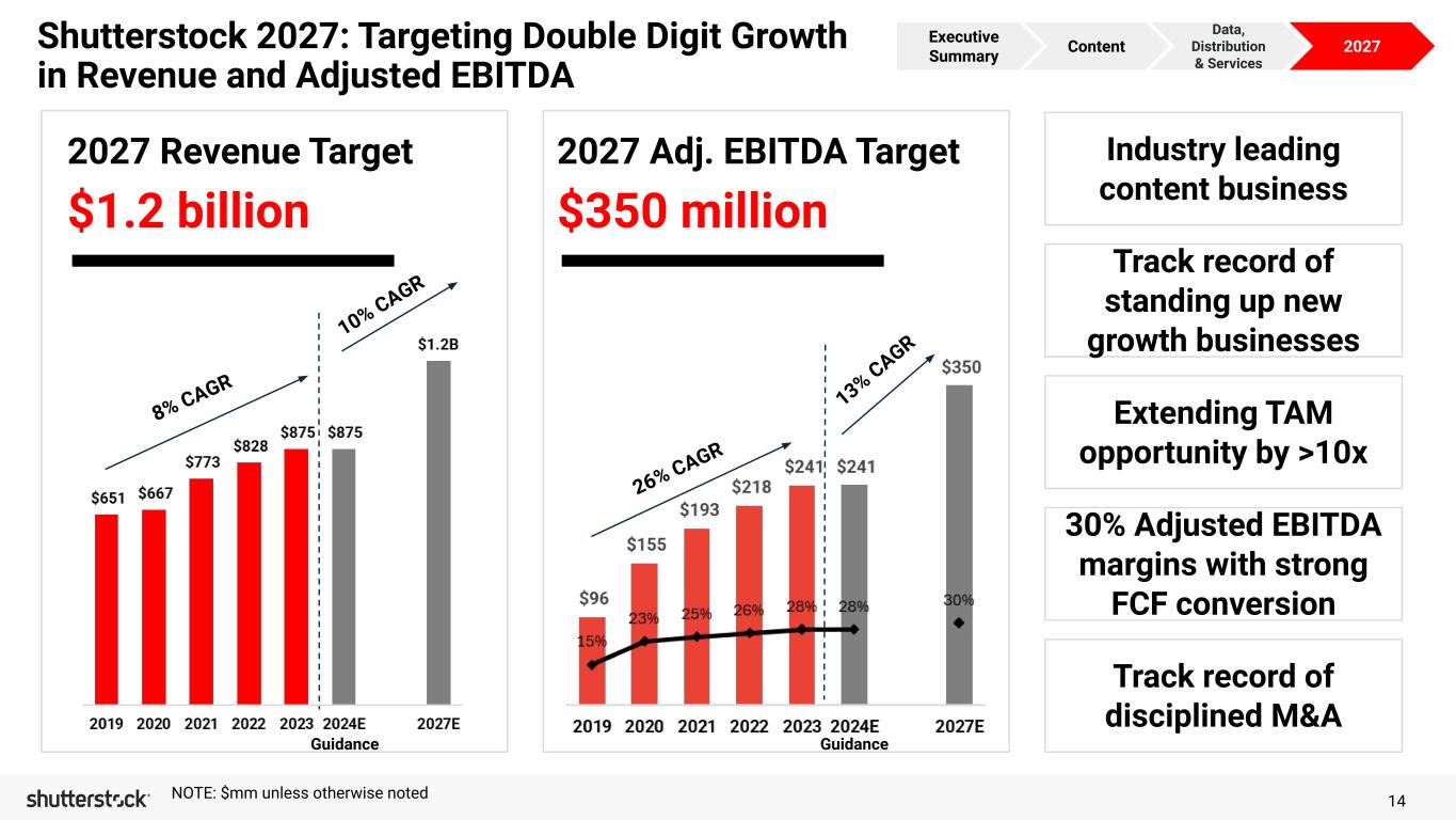 Our success in building a leading content platform has allowed us to make key investments in Data, Distribution and Services where we have an exciting growth opportunity supported by strong industry tailwinds and a large TAM. Going forward, we’ll be shining a light on these exciting growth businesses, and providing revenue breakouts across two categories – Content and Data, Distribution and Services. As part of today’s release, we are also pleased to announce Shutterstock’s 2027 long-term financial targets.”