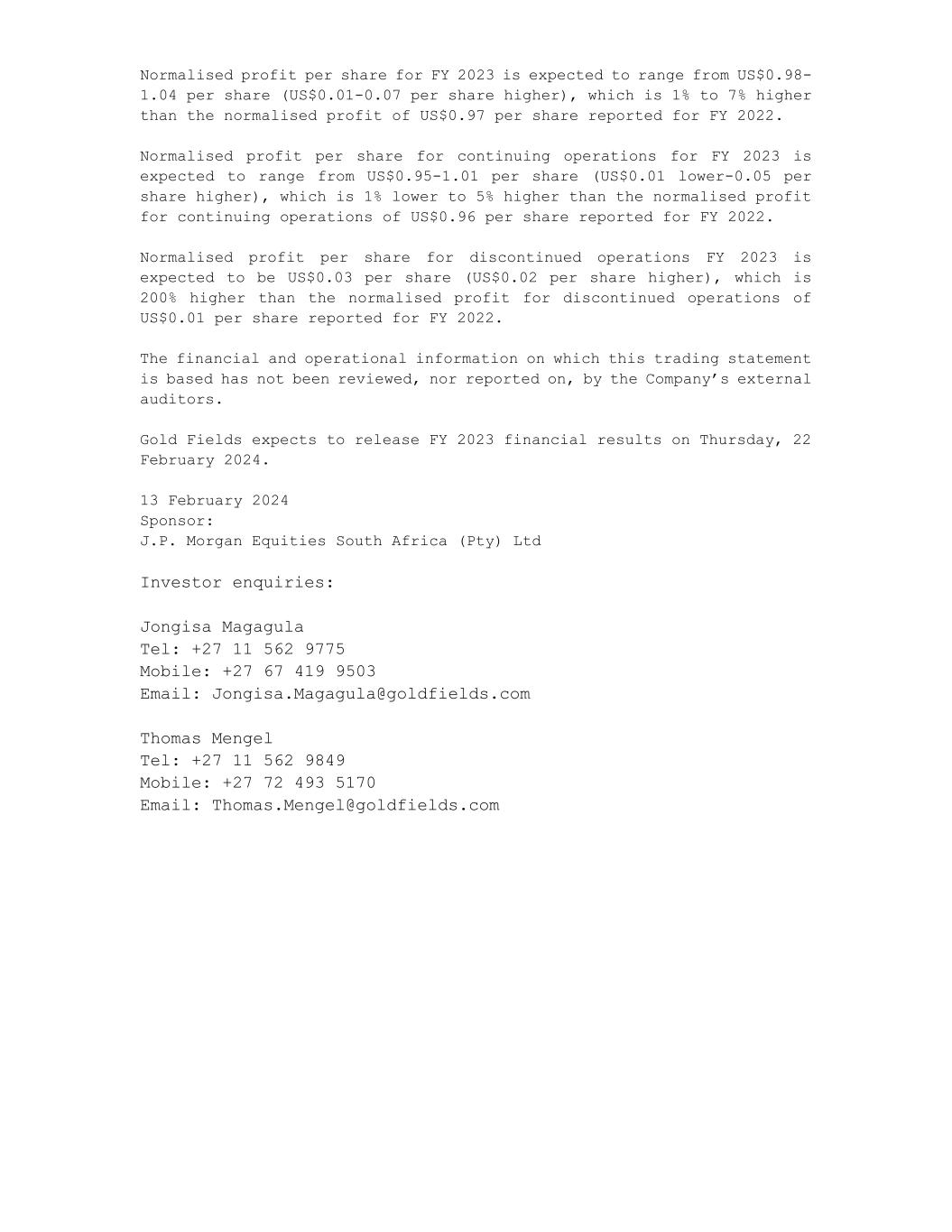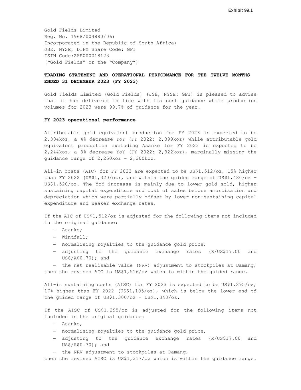 | Gold Fields Limited |