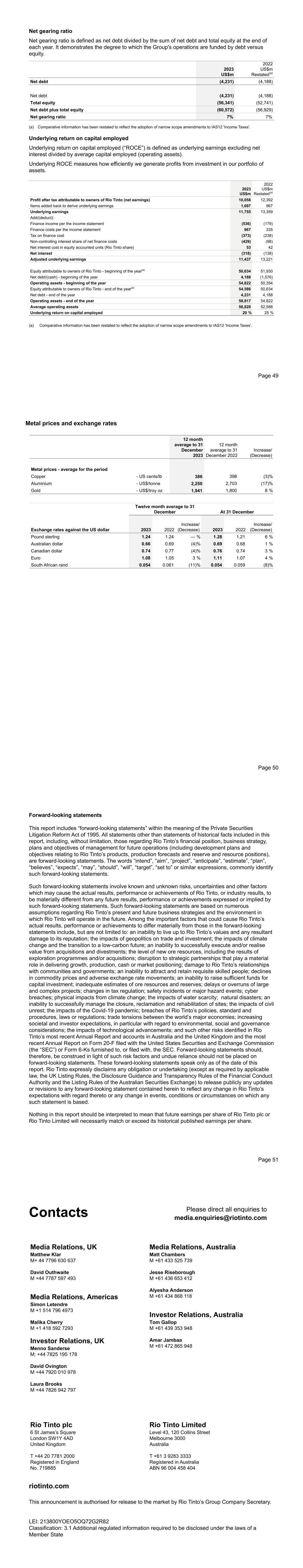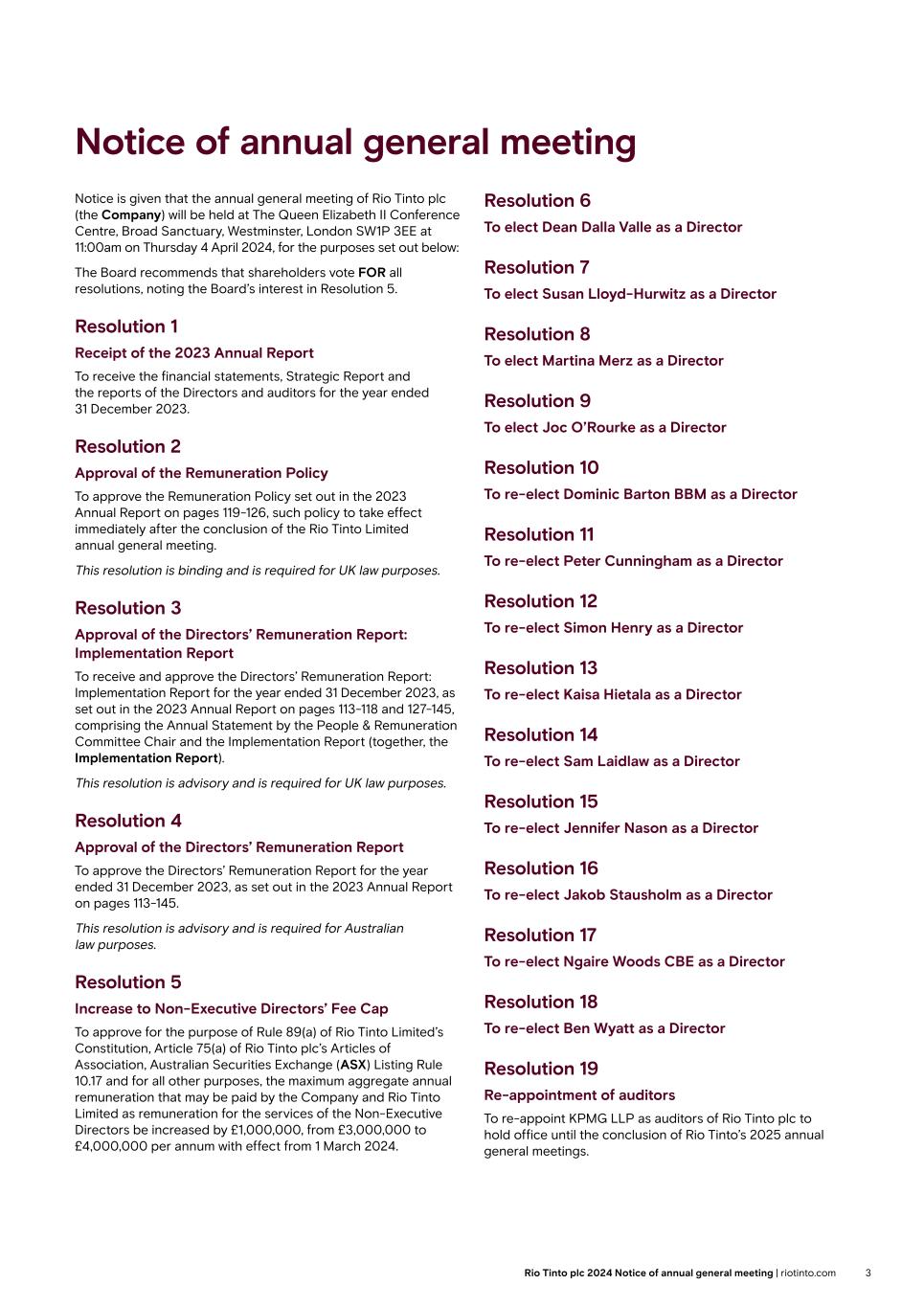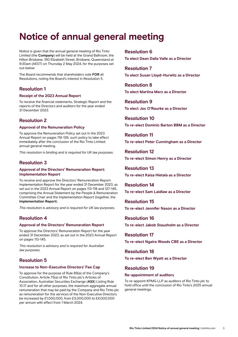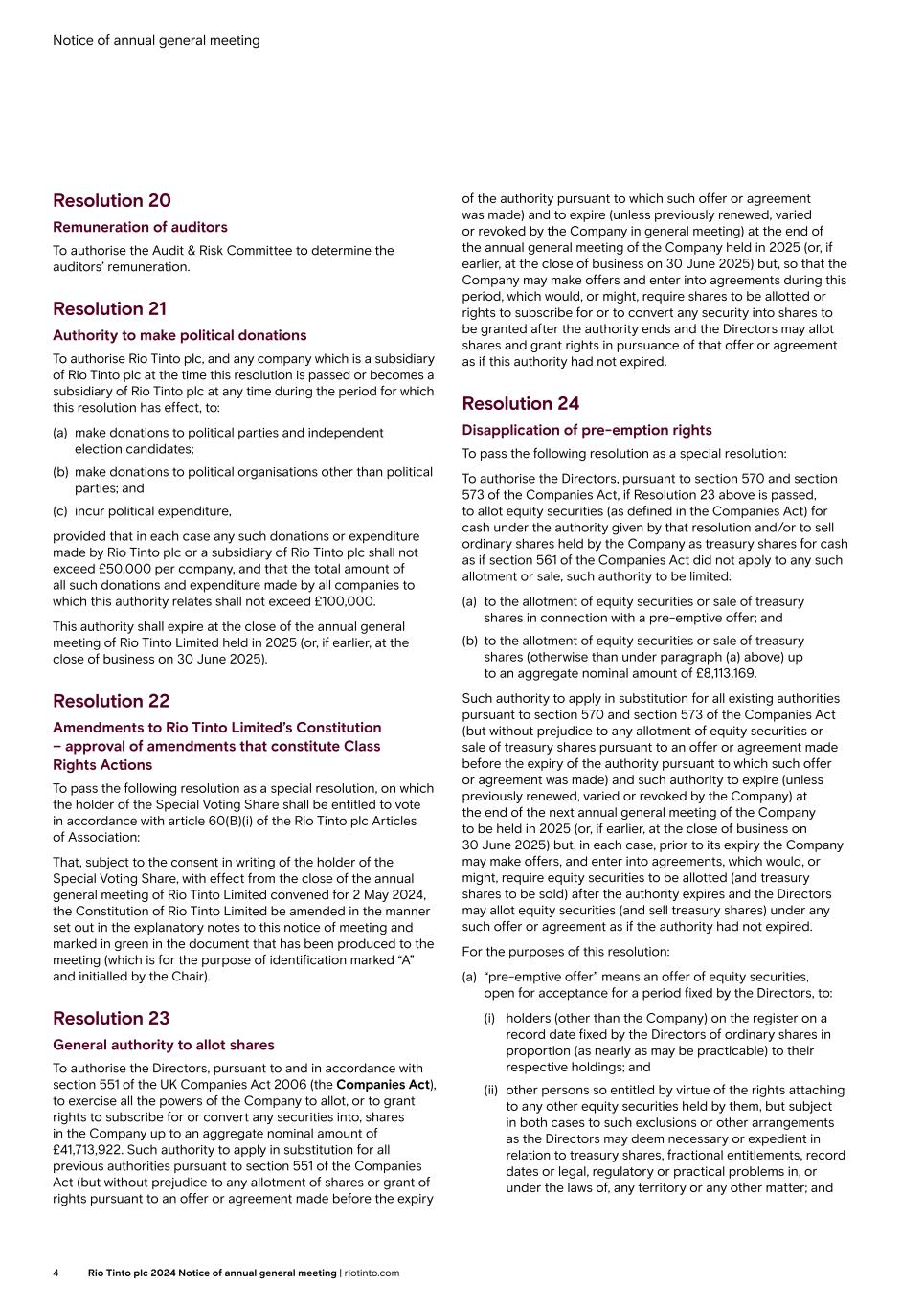 | Rio Tinto plc | Rio Tinto Limited |