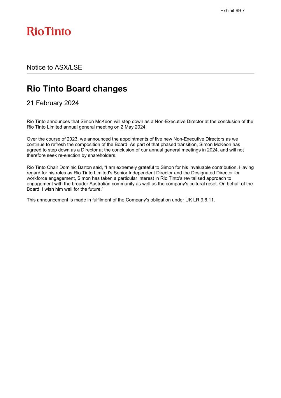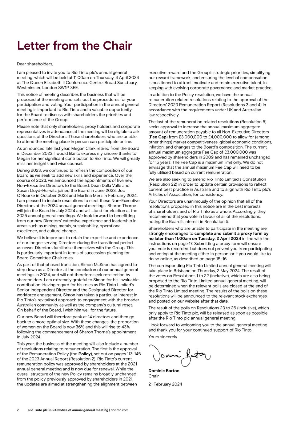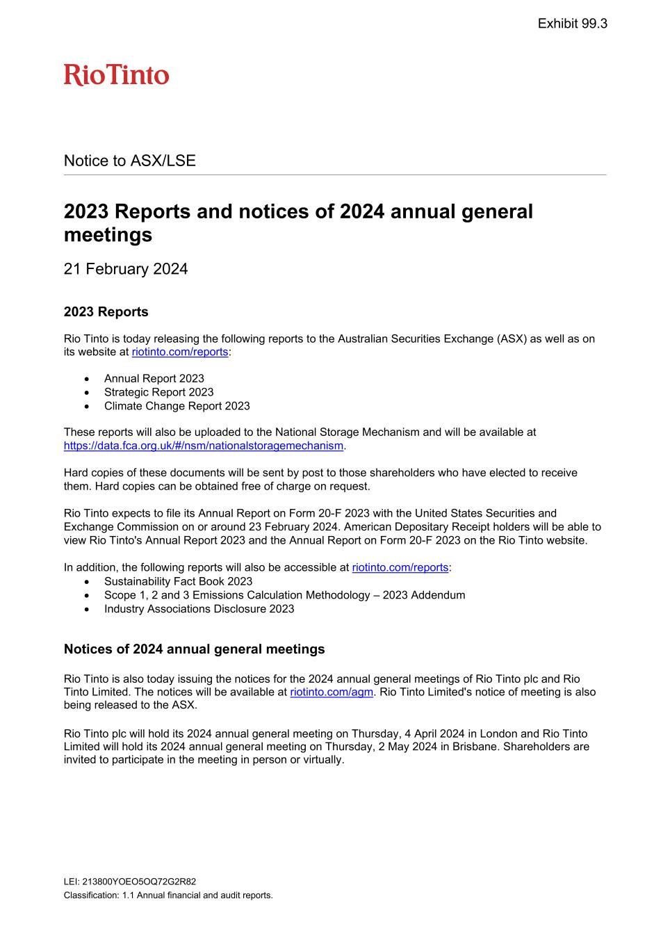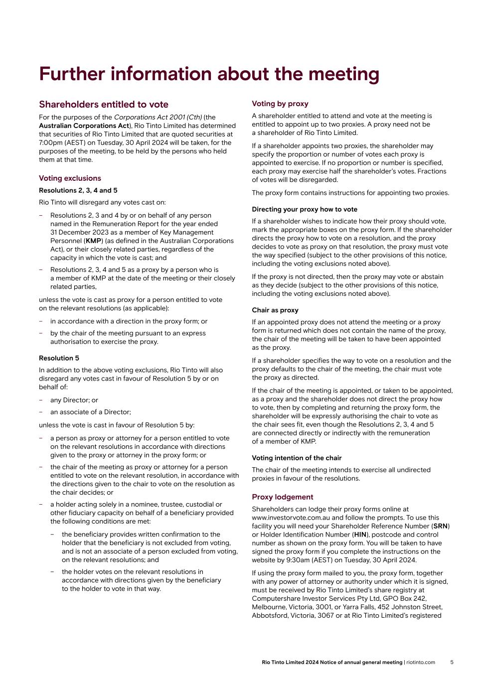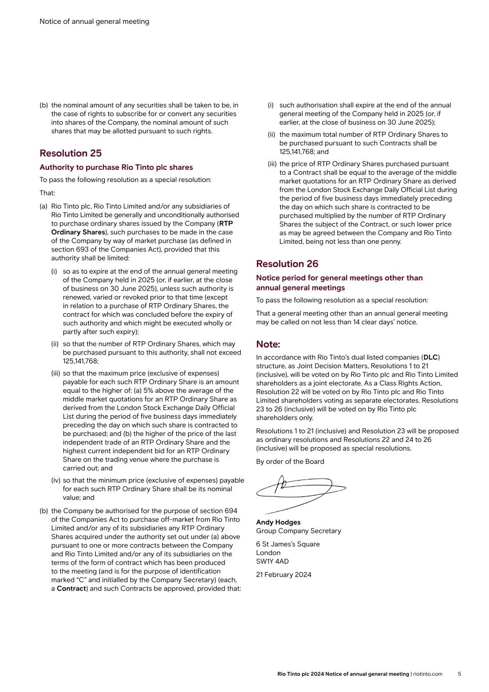 | Rio Tinto plc | Rio Tinto Limited |
