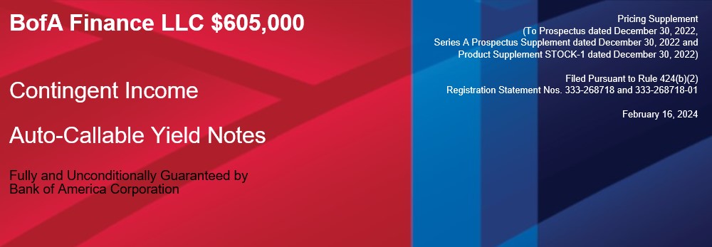 This pricing supplement and the accompanying product supplement, prospectus supplement and prospectus have been filed as part of a registration statement with the SEC, which may, without cost, be accessed on the SEC website at www.sec.gov or obtained from BofAS by calling 1-800-294-1322. Before you invest, you should read this pricing supplement and the accompanying product supplement, prospectus supplement and prospectus for information about us, BAC and this offering. Any prior or contemporaneous oral statements and any other written materials you may have received are superseded by this pricing supplement and the accompanying product supplement, prospectus supplement and prospectus. Certain terms used but not defined in this pricing supplement have the meanings set forth in the accompanying product supplement or prospectus supplement. Unless otherwise indicated or unless the context requires otherwise, all references in this document to “we,” “us,” “our,” or similar references are to BofA Finance, and not to BAC.