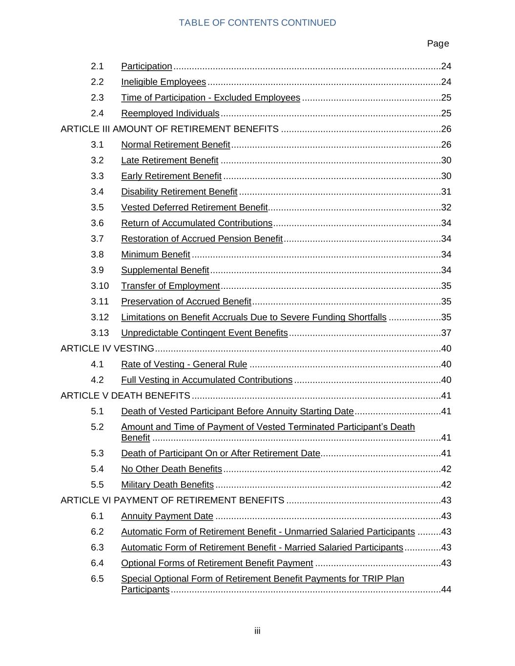TABLE OF CONTENTS