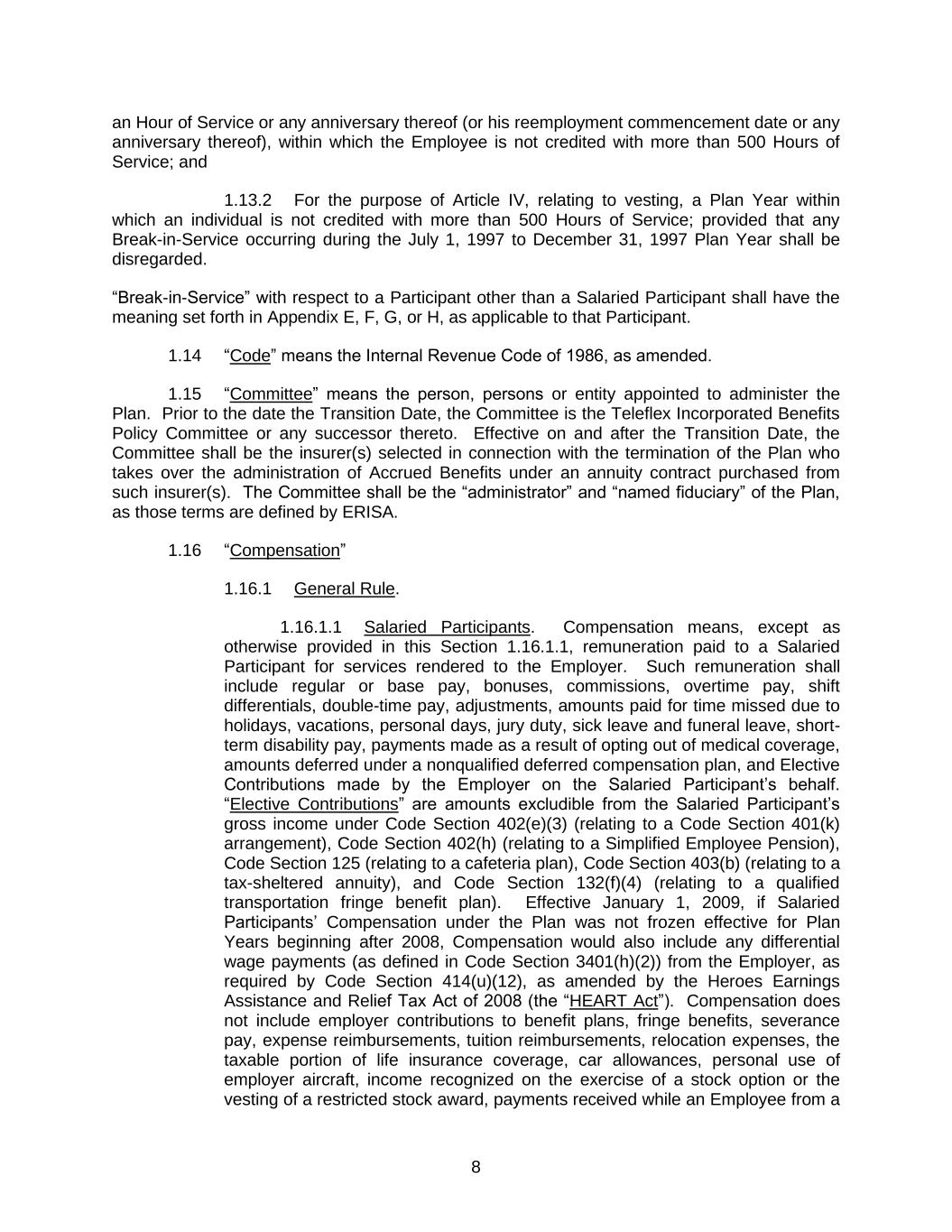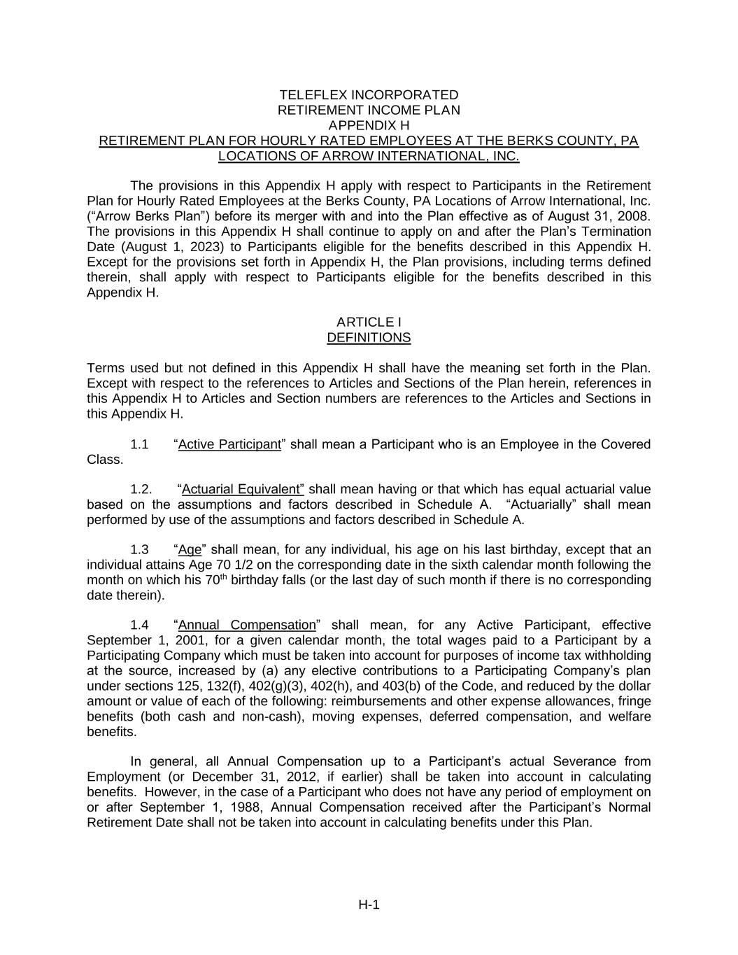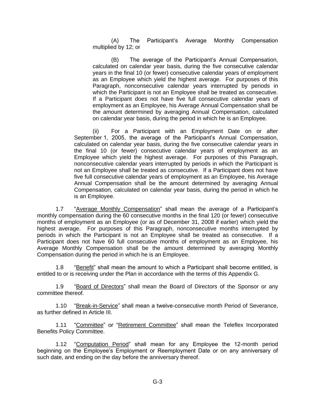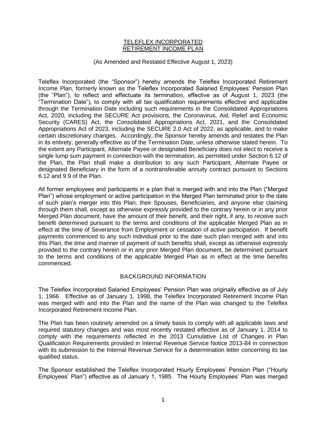 1.Overview. The Board of Directors (the “Board”) of Teleflex Incorporated (the “Company”) has adopted this Incentive Compensation Clawback Policy (the “Policy”) which requires the recoupment of certain incentive-based compensation in accordance with the terms herein and is intended to comply with Section 303A.14 of The New York Stock Exchange Listed Company Manual, as such section may be amended from time to time (the “Listing Rules”). Capitalized terms not otherwise defined herein shall have the meanings assigned to such terms under Section 12 of this Policy.