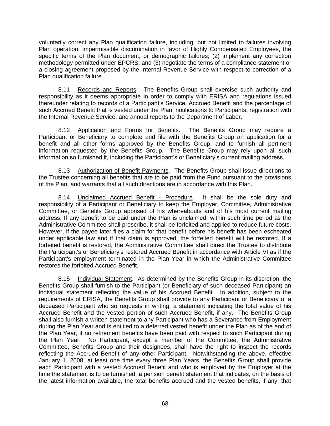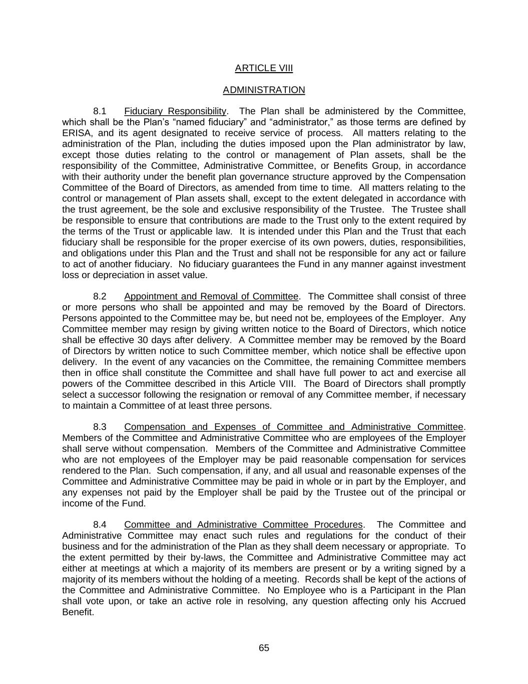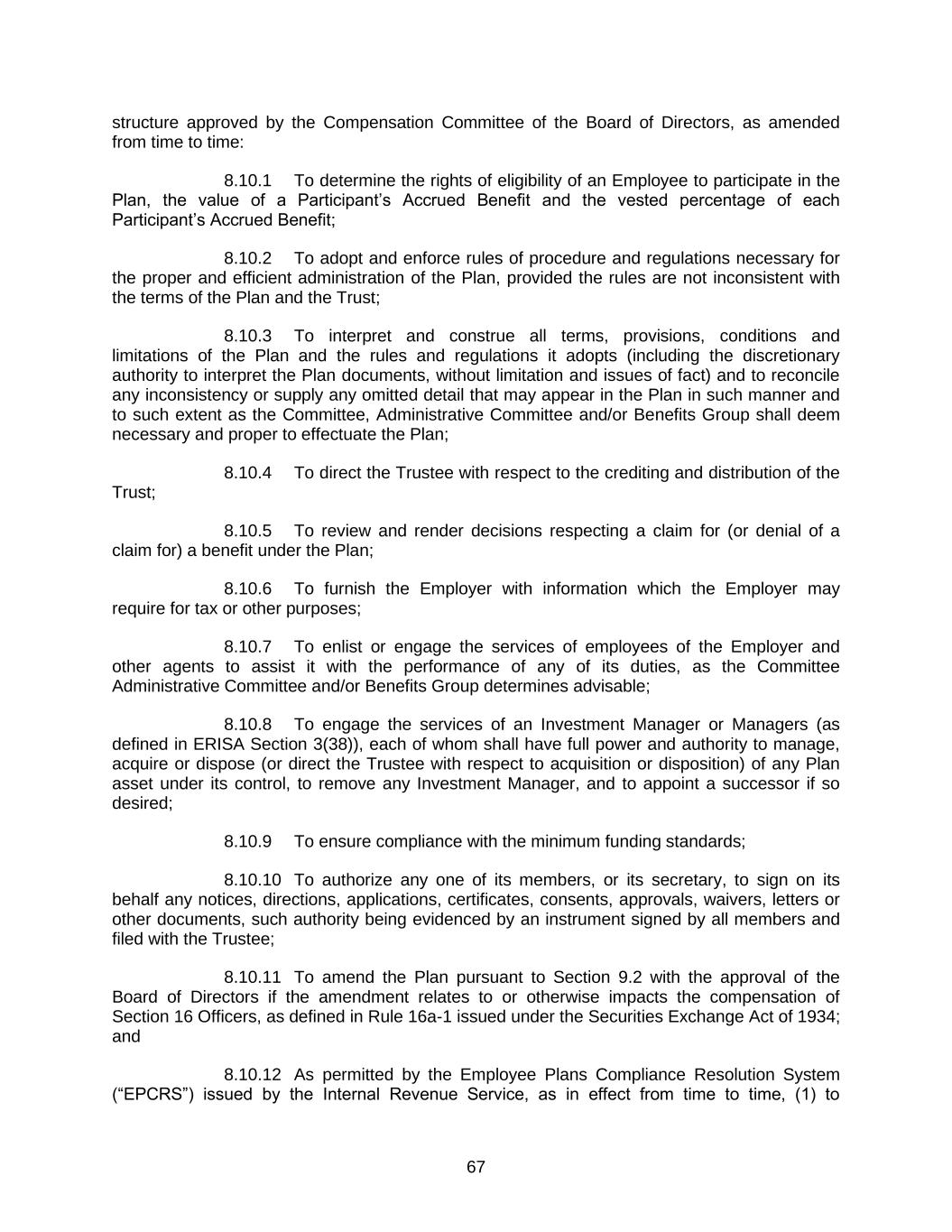 8.Committee Determination Final. Any determination by the Committee with respect to the Policy shall be final, conclusive and binding on all interested parties.