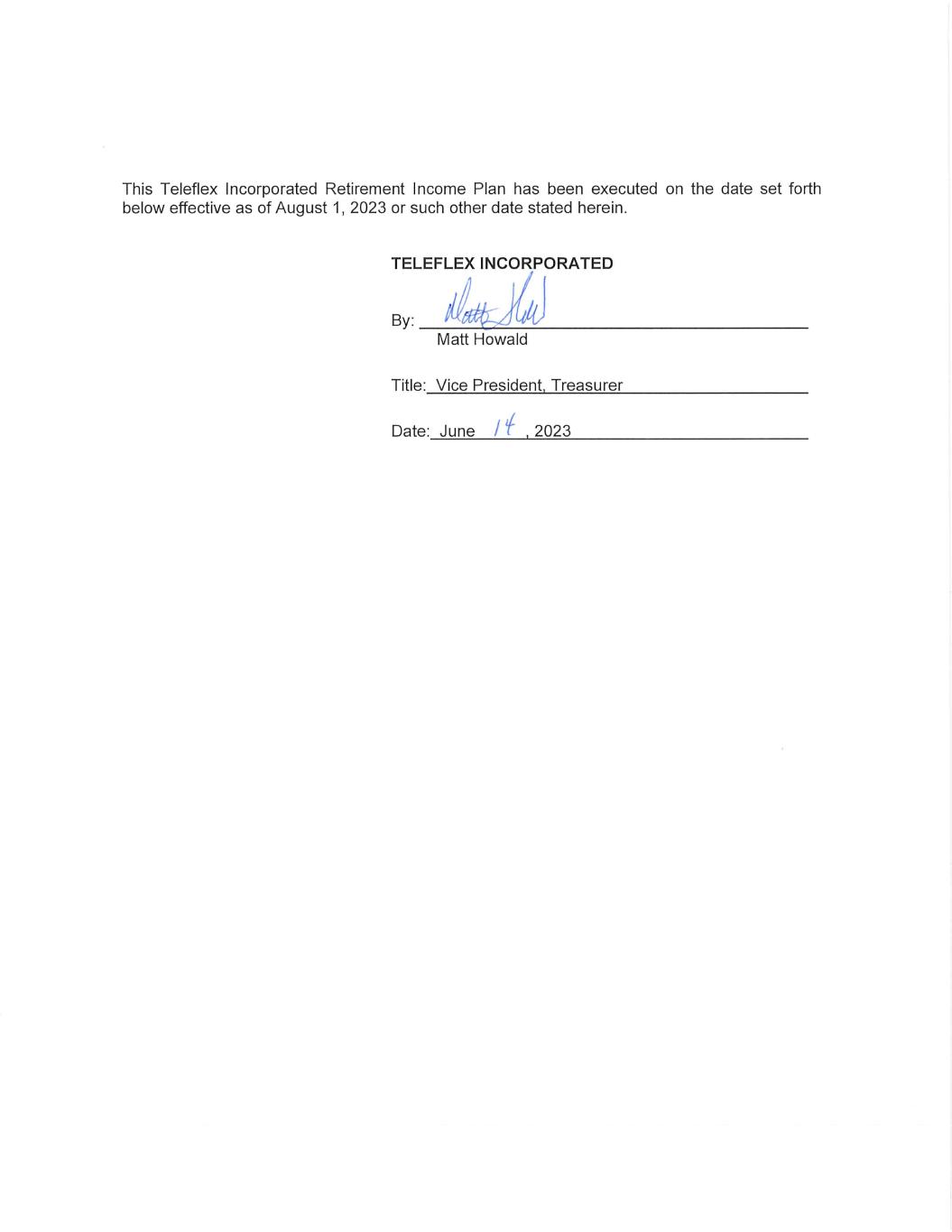 In connection with the Annual Report of Teleflex Incorporated (the “Company”) on Form 10-K for the year ended December 31, 2023, as filed with the Securities and Exchange Commission on the date hereof (the “Report”), I, Thomas E. Powell, Executive Vice President and Chief Financial Officer, certify, pursuant to 18 U.S.C. §1350, as adopted pursuant to §906 of the Sarbanes-Oxley Act of 2002, that: