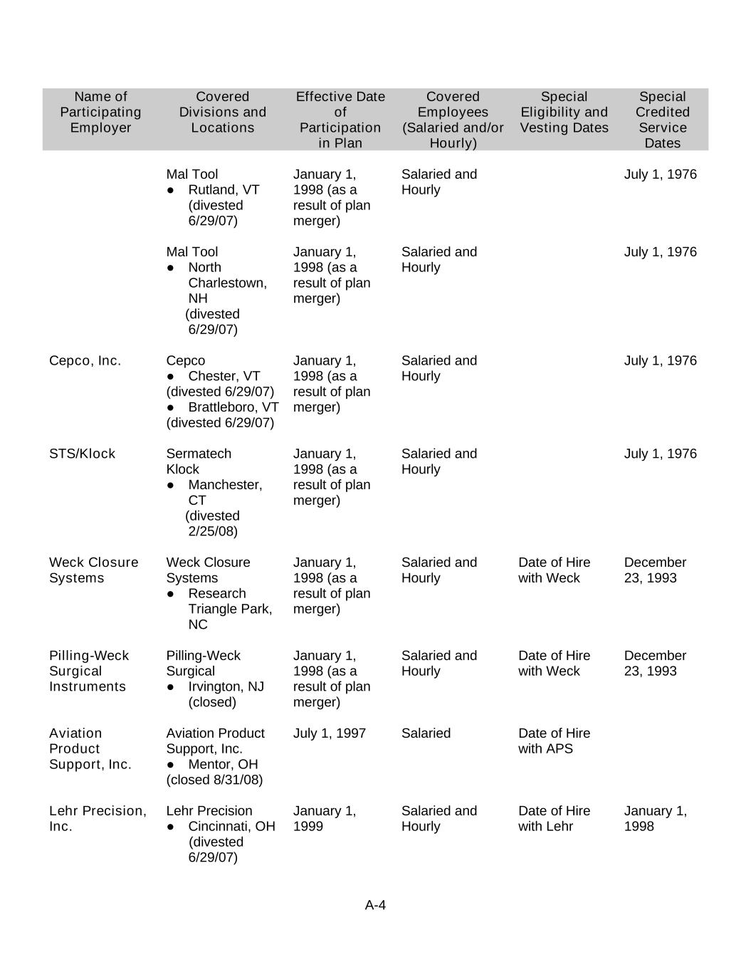 Beginning in 2007, we significantly changed the composition of our portfolio of businesses, expanding our presence in the medical device industry, while divesting all of our other businesses, which served the aerospace, automotive, industrial and marine markets. Following the divestitures of our marine business and cargo container and systems businesses in 2011, we became exclusively a medical device company.