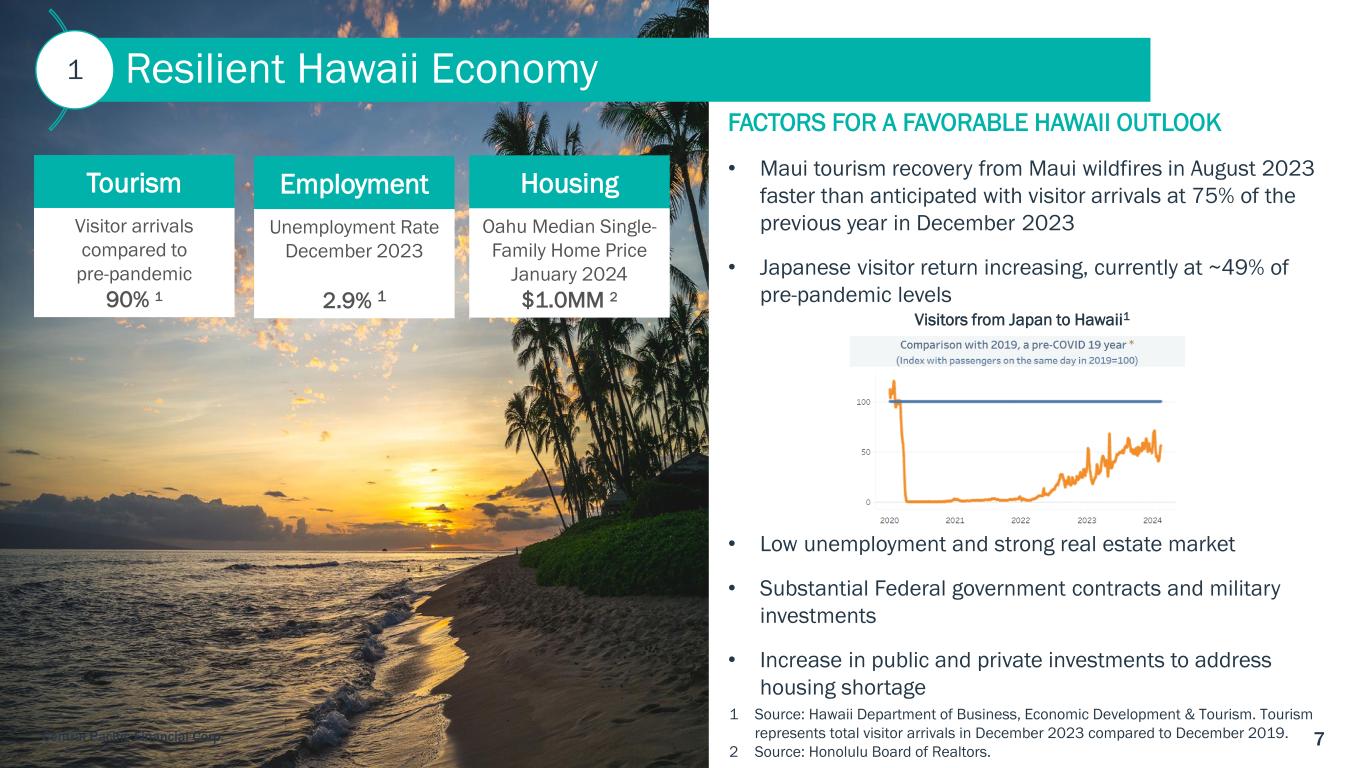 6Central Pacific Financial Corp. CPF Value Drivers Resilient Hawaii Economy Diversified Loan Portfolio Valuable Deposit Franchise Focus on Driving Efficiency Solid Credit & Capital Profile Digital Leader in Hawaii 1 2 3 4 5 6