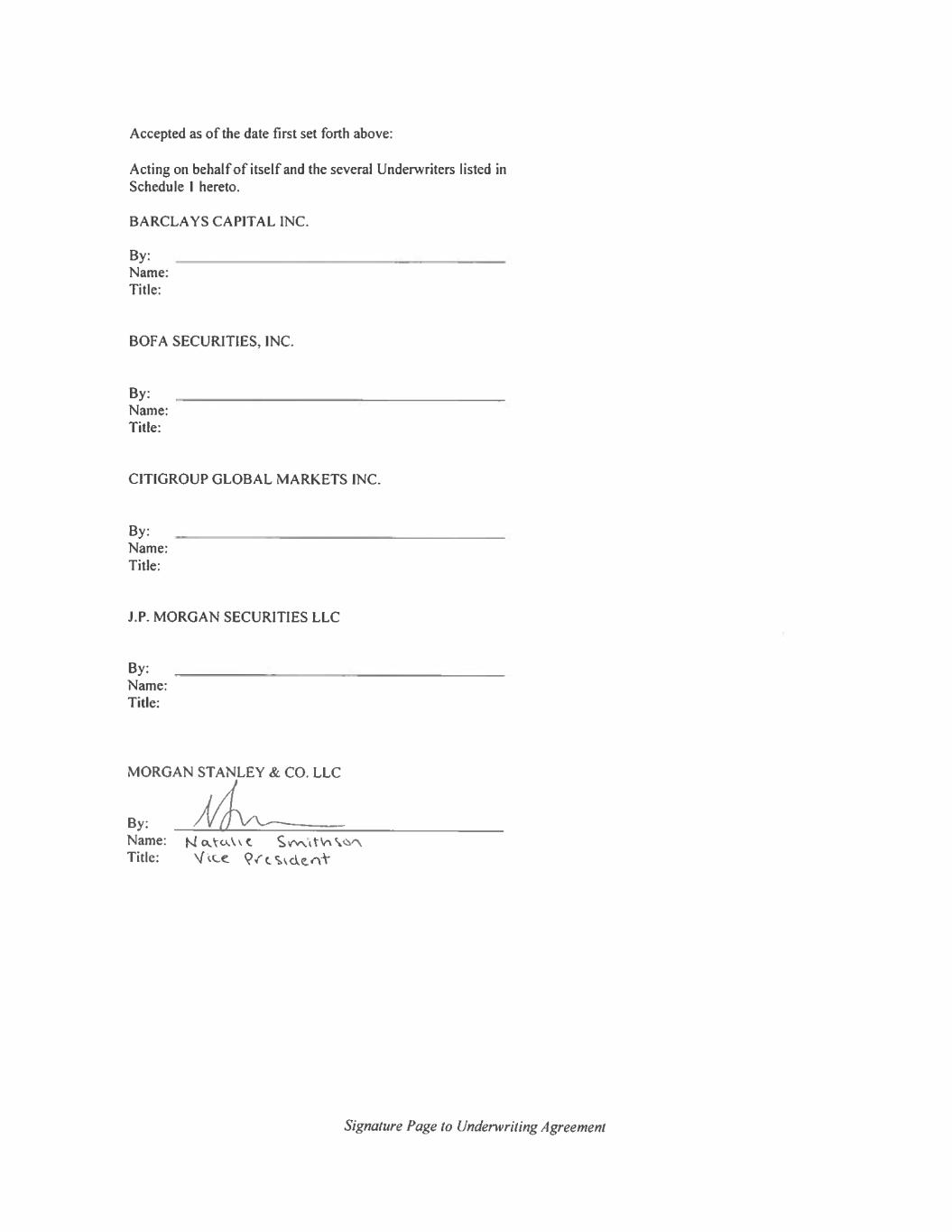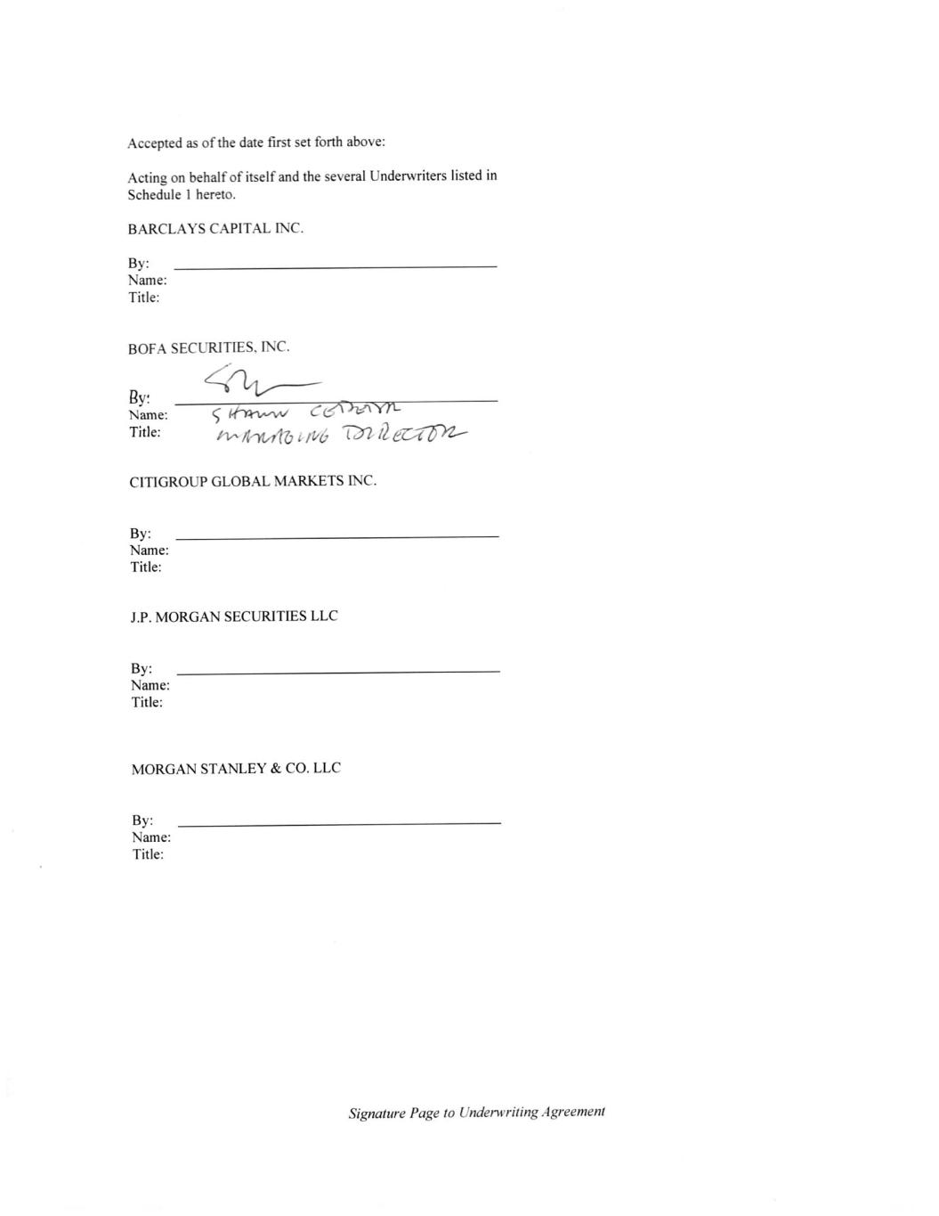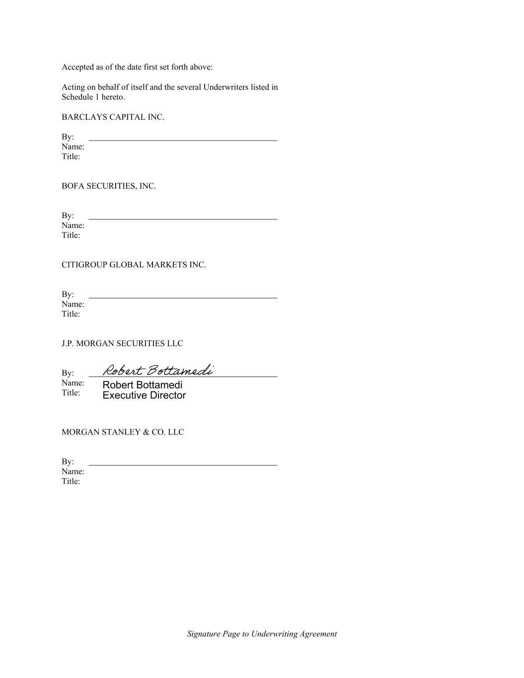 Signature Page to Underwriting Agreement Accepted as of the date first set forth above: Acting on behalf of itself and the several Underwriters listed in Schedule 1 hereto. BARCLAYS CAPITAL INC. By: Name: Title: BOFA SECURITIES, INC. By: Name: Title: CITIGROUP GLOBAL MARKETS INC. By: Name: Title: J.P. MORGAN SECURITIES LLC By: Name: Title: MORGAN STANLEY & CO. LLC By: Name: Title: Robert Bottamedi Executive Director