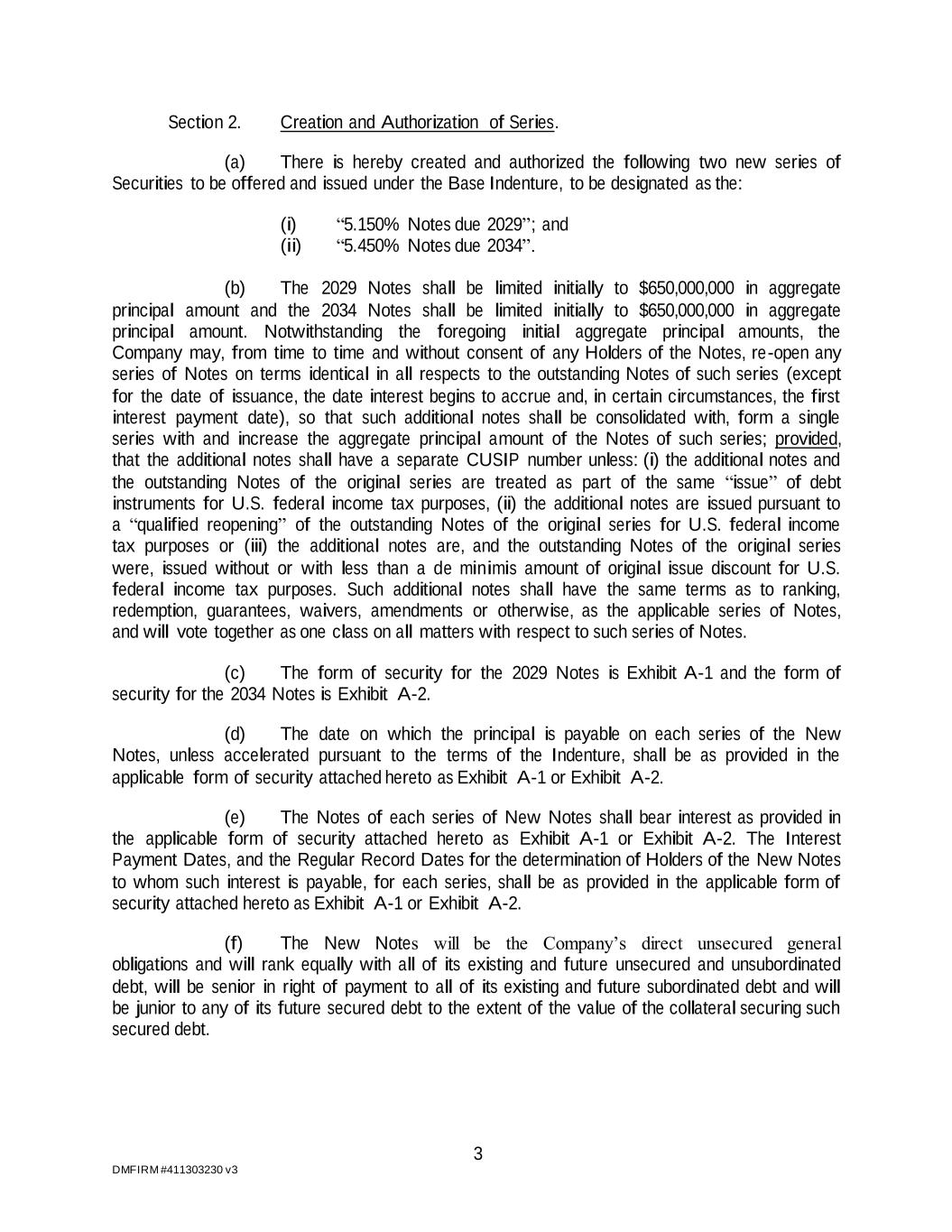 Schedule 2-2 AmericasActive:19593367.4 Price to public: 97.683% ($390,732,000) Underwriting discount: 0.875% ($3,500,000) Purchase price: 96.808% ($387,232,000), plus accrued interest, if any Sinking fund provisions: None Redemption provisions: As set forth in the Final Prospectus Other provisions: As set forth in the Final Prospectus D. Other Provisions Relating to the Securities Closing Date, Time and Location: February 27, 2024 at approximately 10:00 A.M. ET Ballard Spahr LLP 1735 Market Street, 51st Floor Philadelphia, Pennsylvania 19103 Type of Offering: Non-delayed Applicable Time of Sale of the Securities pursuant to Section 1(d) of the Underwriting Agreement: 5:10 PM ET, February 22, 2024