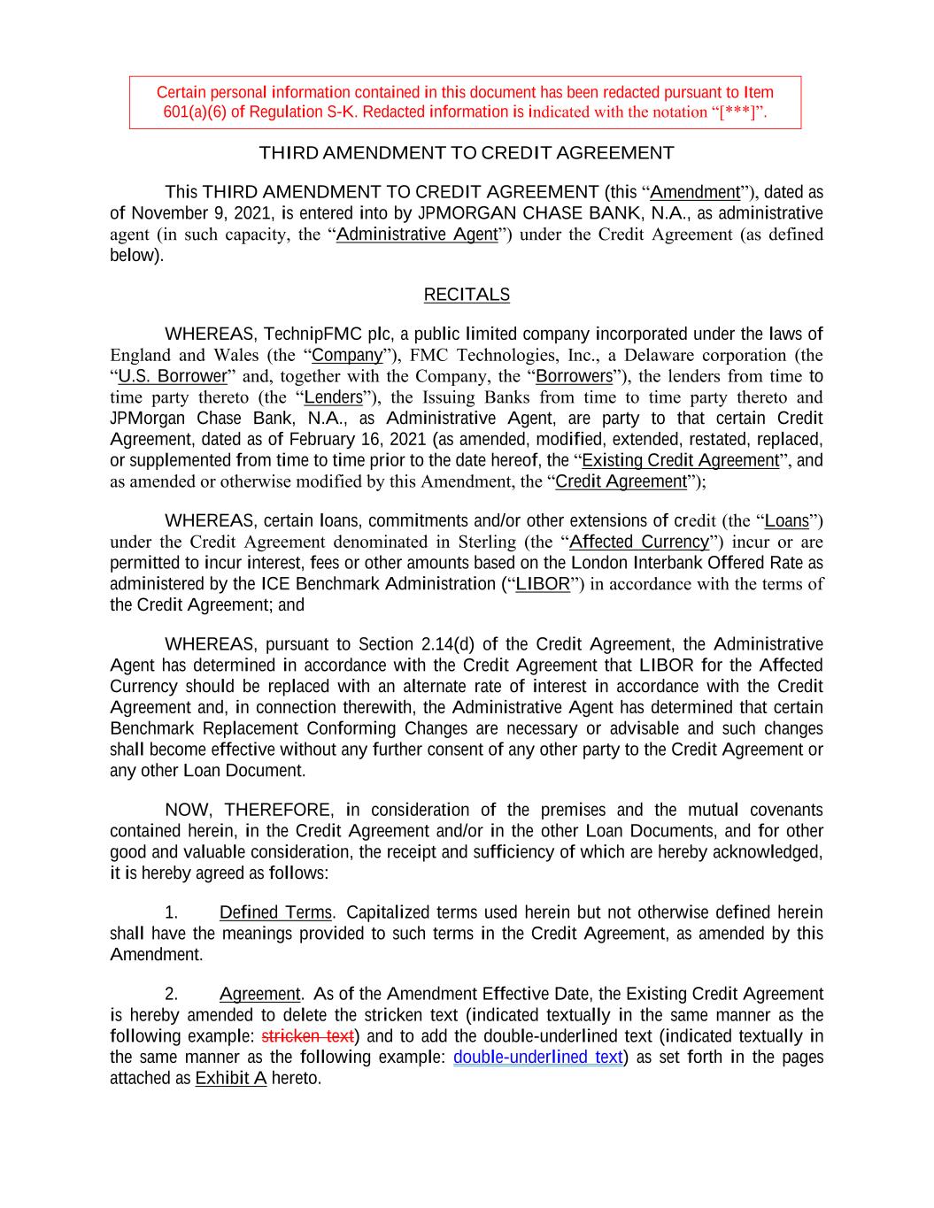 TechnipFMC plc (the “Company”) has adopted this Policy for Recovery of Erroneously Awarded Compensation (the “Policy”), effective as of December 1, 2023 (the “Effective Date”), which Policy is an amendment and restatement of the Company’s Clawback Policy, dated as of February 20, 2018 (the “Prior Policy”). Capitalized terms used in this Policy but not otherwise defined herein are defined in Section 11.