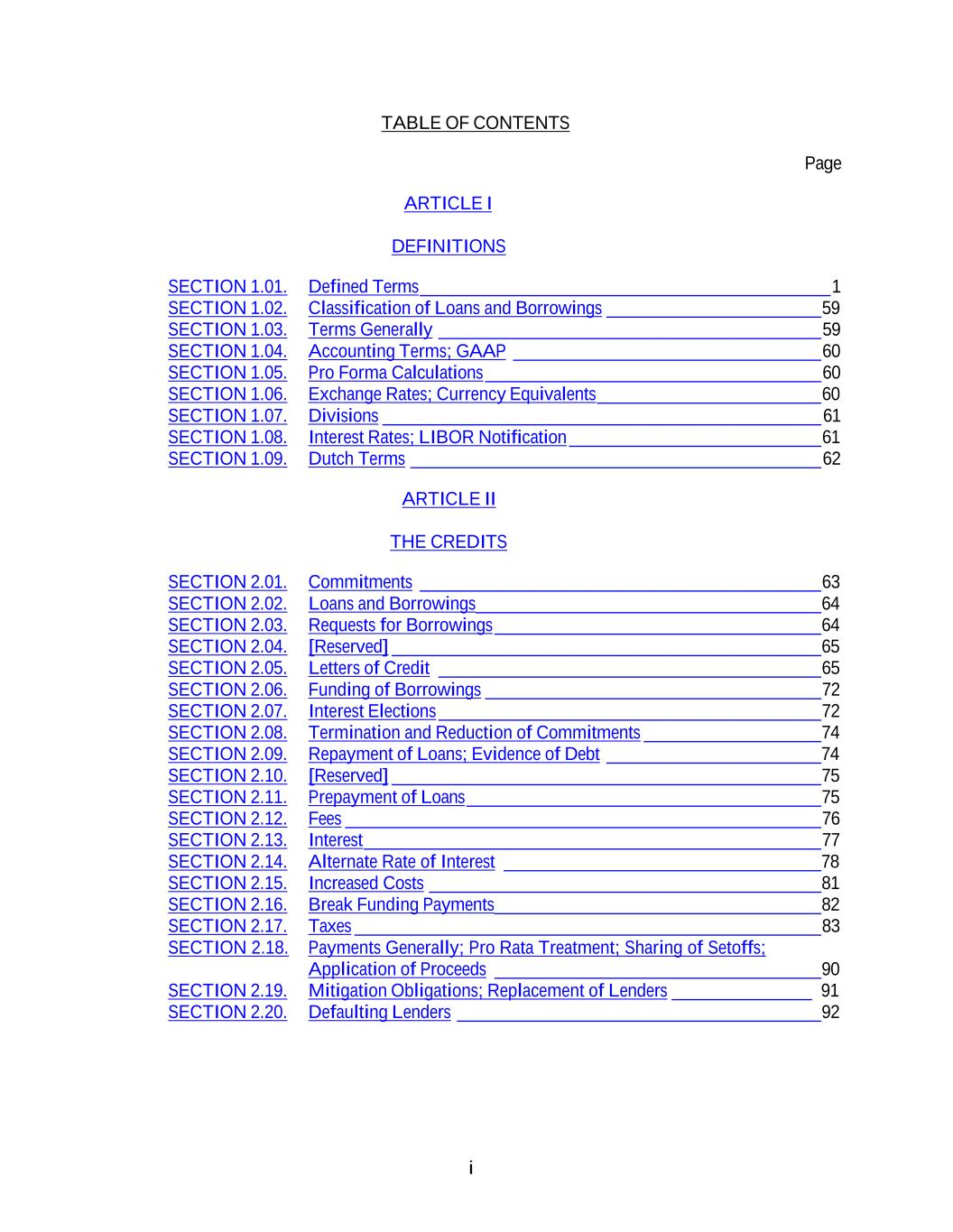 TABLE OF CONTENTS