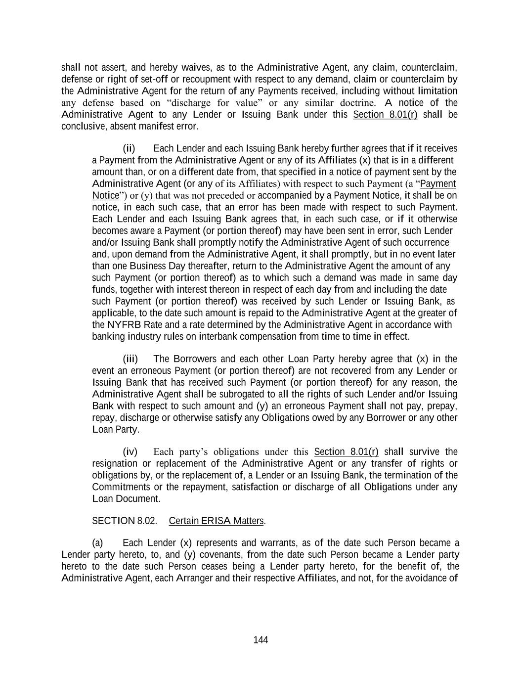 unless otherwise prohibited by the Applicable Rules, to the extent this Policy provides for recovery of Erroneously Awarded Compensation already recovered by the Company pursuant to Section 304 of the Sarbanes-Oxley Act of 2002 or Other Recovery Arrangements, the amount of Erroneously Awarded Compensation already recovered by the Company from the recipient of such Erroneously Awarded Compensation may be credited to the amount of Erroneously Awarded Compensation required to be recovered pursuant to this Policy from such person.