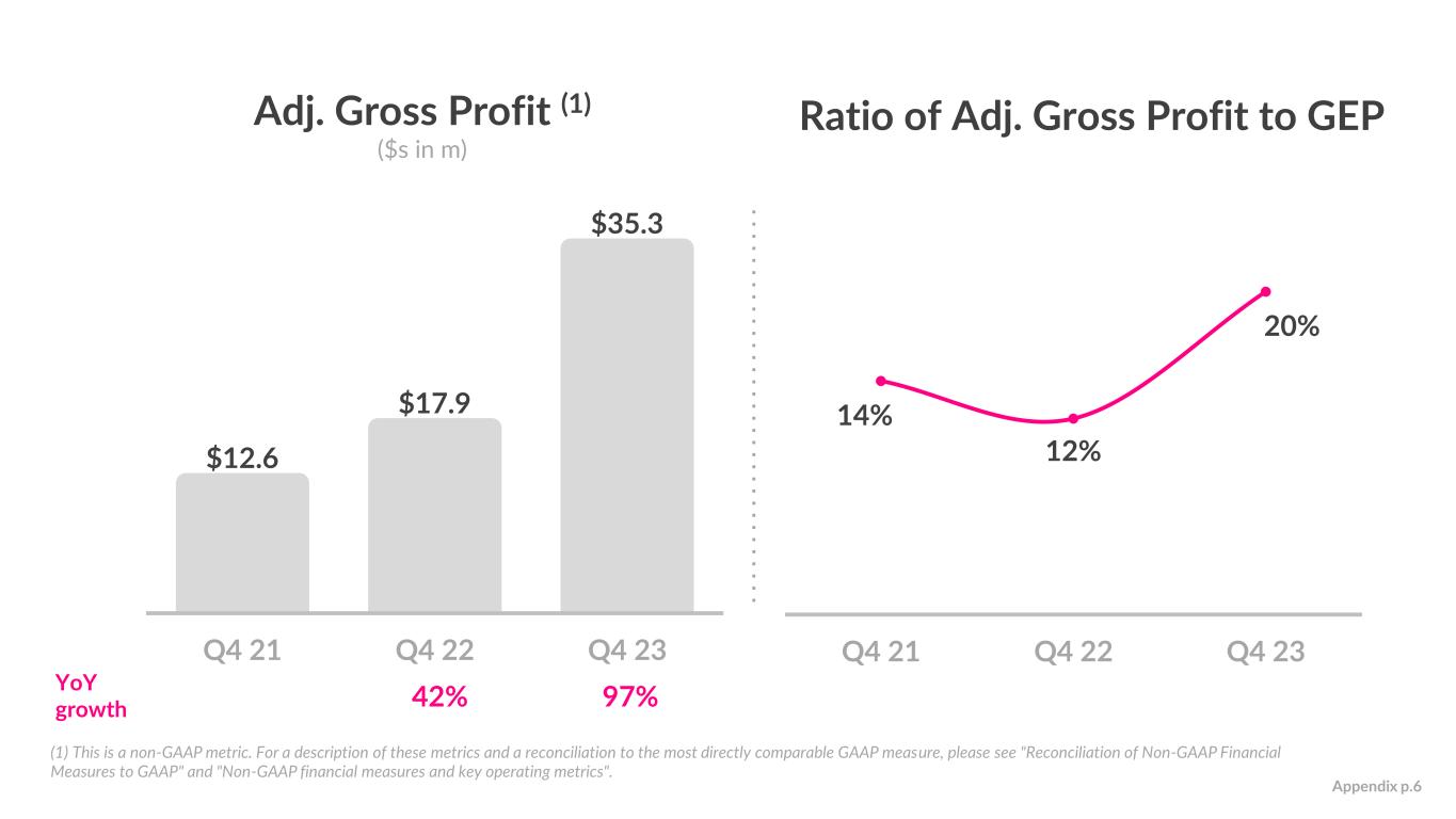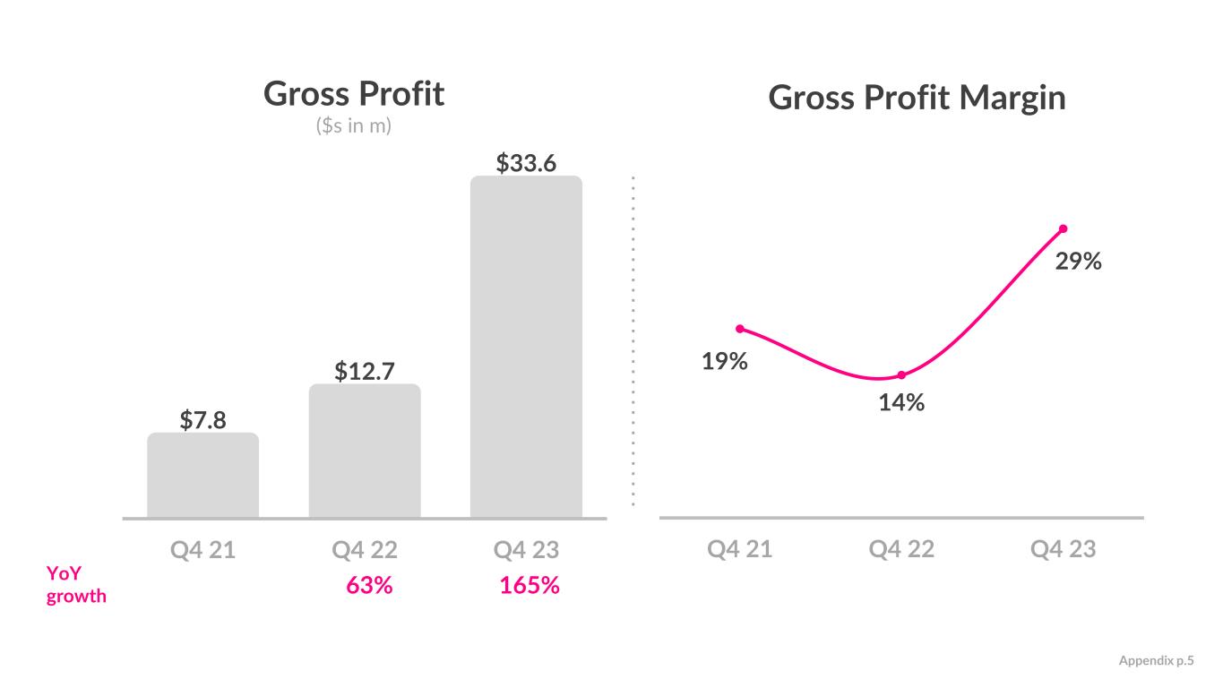 Gross Profit ($s in m) Gross Profit Margin 165%63% 19% 14% 29% Q4 21 Q4 22 Q4 23 YoY growth Appendix p.5 $7.8 $12.7 $33.6 Q4 21 Q4 22 Q4 23