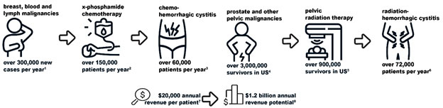 Consistent with our strategy, the initial indication that we are currently addressing (via development of our product candidate, which we have designated as LP-10) is “hemorrhagic cystitis” (“HC”), which is chronic, uncontrolled urinary blood loss that results from certain chemotherapies (such as alkylating agents) or pelvic radiation therapy (also called “radiation cystitis”). Many radiation cystitis patients experience severe morbidity (and in some cases, mortality), and currently, there is no therapy for their condition approved by the FDA, or, to our knowledge, any other regulatory body.