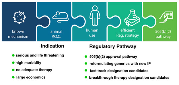 We believe that our strategy combines many of the cost efficiencies and risk abatements derived from using existing generic drugs with potential patent protections for our proprietary formulations; this strategy allows us to expedite, protect, and monetize our product candidates. Additionally, we maintain a therapeutic focus on diseases with significant, unaddressed morbidity and mortality where no approved drug therapy currently exists. We believe that this focus can potentially help reduce the cost, time and risk associated with obtaining marketing approval. We have not yet commercialized any products, and we do not expect to generate revenue from sales of any product candidates for several years.