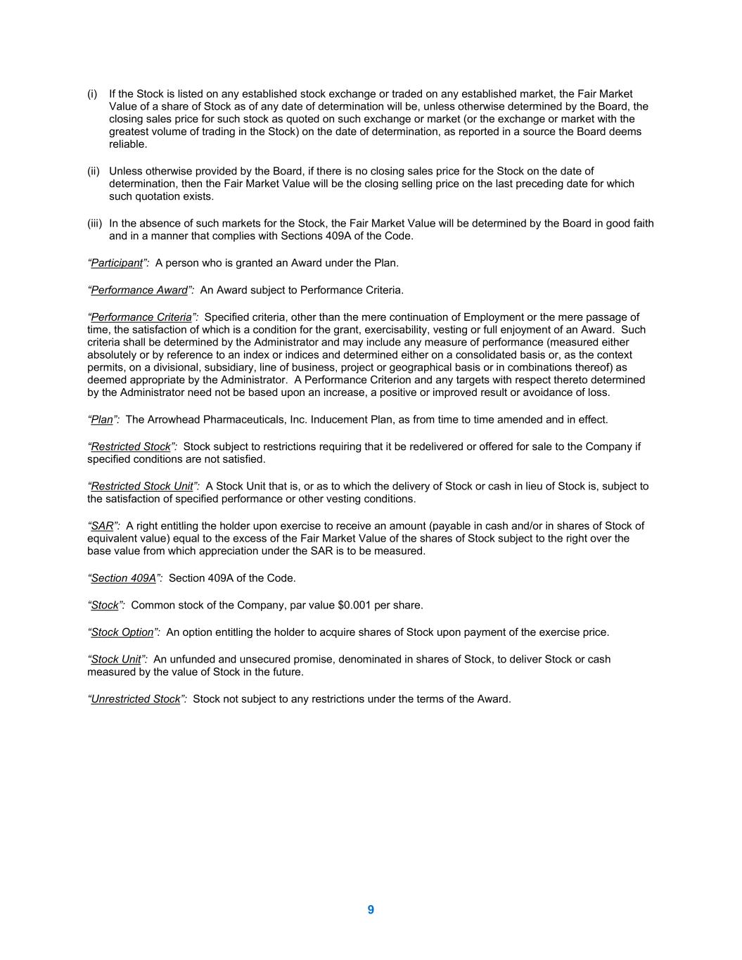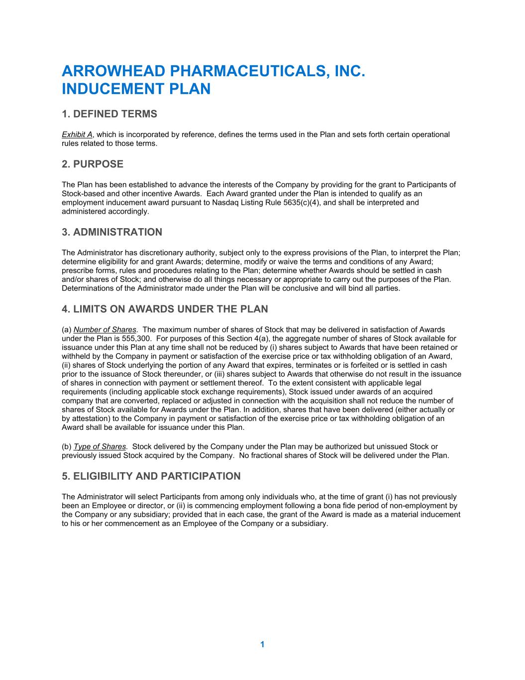 ARROWHEAD PHARMACEUTICALS, INC. INDUCEMENT PLAN