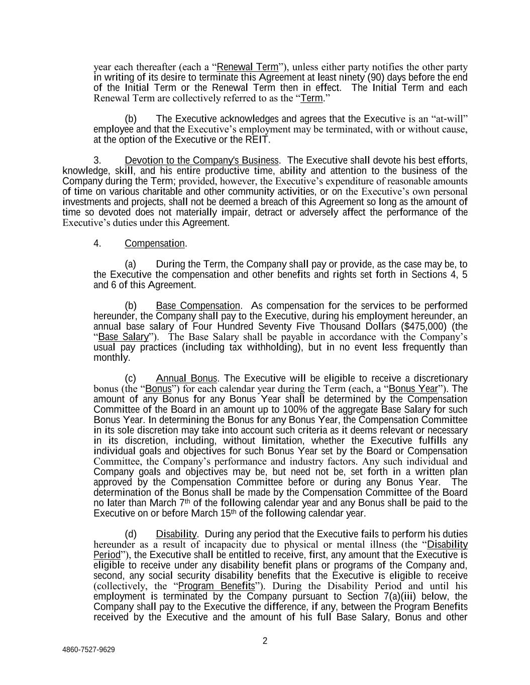The Company is a REIT and the general partner of the Operating Partnership. As the sole general partner of the Operating Partnership, we generally have the power to manage and have complete control over the conduct of the Operating Partnership's affairs and all decisions or actions made or taken by us as the general partner pursuant to the partnership agreement are generally binding upon all of the partners and the Operating Partnership.