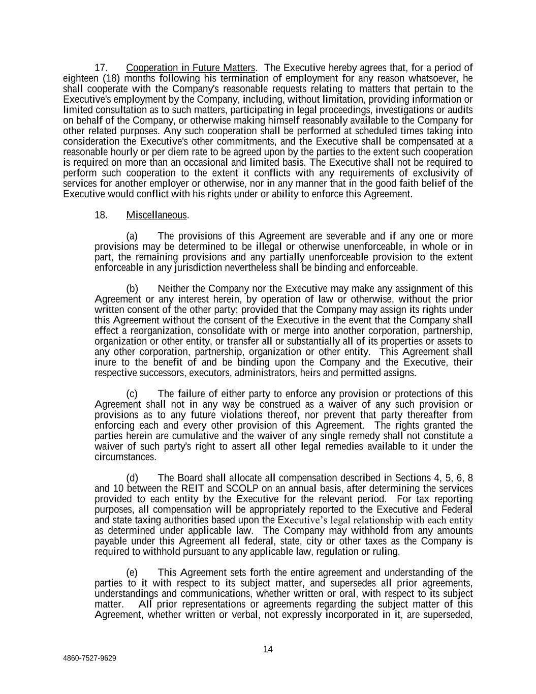 Under the partnership agreement, the Operating Partnership is structured to make distributions with respect to certain of the Operating Partnership units ("OP units") at the same time that distributions are made to our common shareholders. The Operating Partnership is structured to permit limited partners holding certain classes or series of OP units to exchange those OP units for shares of our common stock (in a taxable transaction) and achieve liquidity for their investment.