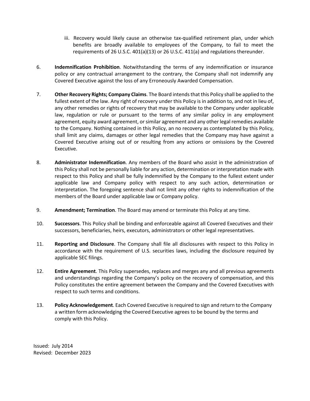 We do not intend to file amendments to the previously filed Quarterly Reports on Form 10-Q for the quarters ended March 31, 2023, June 30, 2023 and September 30, 2023. Accordingly, investors should rely only on the financial information and other disclosures regarding the restated periods in this Annual Report or in future filings with the SEC, and not on any previously issued or filed reports, earnings releases or similar communications relating to these periods.