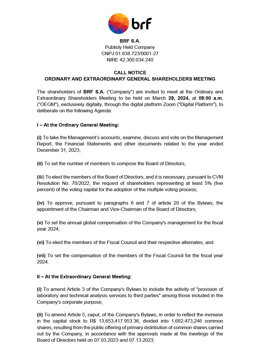 | 1 | CALL NOTICE ORDINARY AND EXTRAORDINARY GENERAL SHAREHOLDERS MEETING |