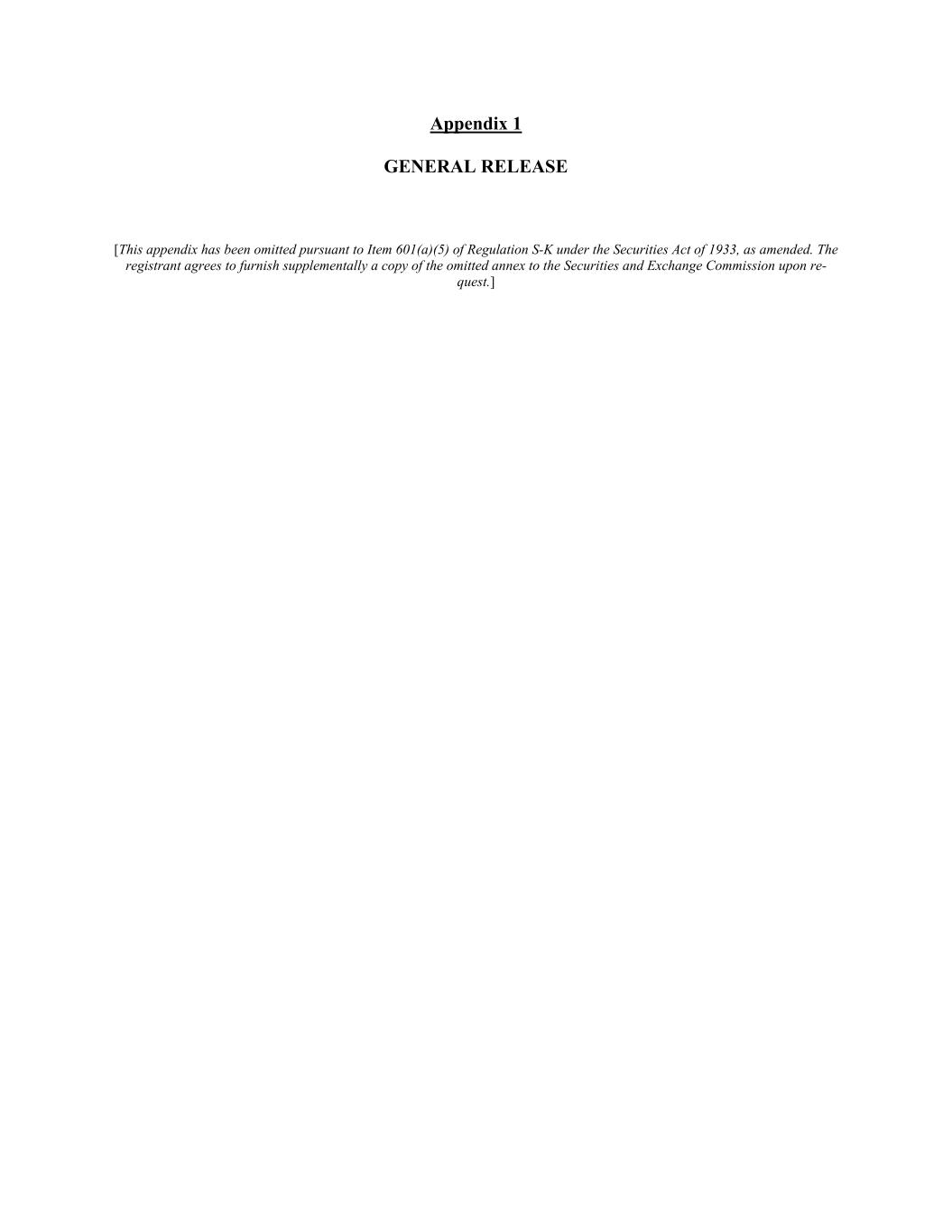 Appendix 1 GENERAL RELEASE [This appendix has been omitted pursuant to Item 601(a)(5) of Regulation S-K under the Securities Act of 1933, as amended. The registrant agrees to furnish supplementally a copy of the omitted annex to the Securities and Exchange Commission upon re- quest.]