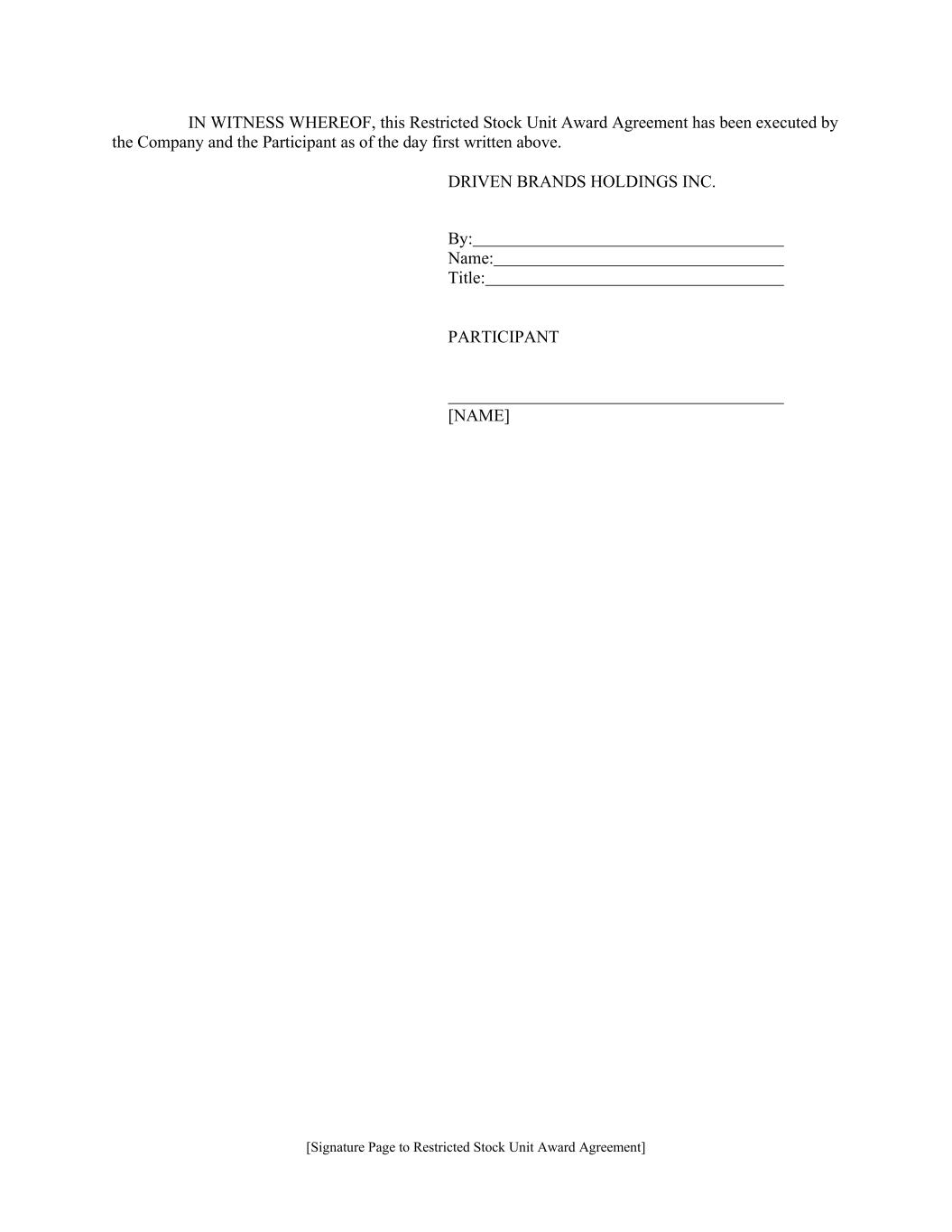 [Signature Page to Restricted Stock Unit Award Agreement] IN WITNESS WHEREOF, this Restricted Stock Unit Award Agreement has been executed by the Company and the Participant as of the day first written above. DRIVEN BRANDS HOLDINGS INC. By: Name: Title: PARTICIPANT [NAME]