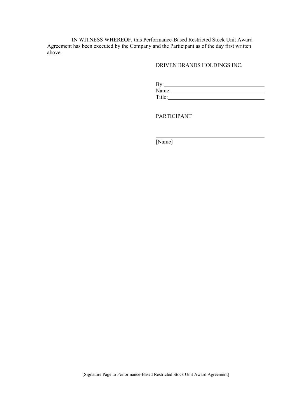[Signature Page to Performance-Based Restricted Stock Unit Award Agreement] IN WITNESS WHEREOF, this Performance-Based Restricted Stock Unit Award Agreement has been executed by the Company and the Participant as of the day first written above. DRIVEN BRANDS HOLDINGS INC. By: Name: Title: PARTICIPANT [Name]