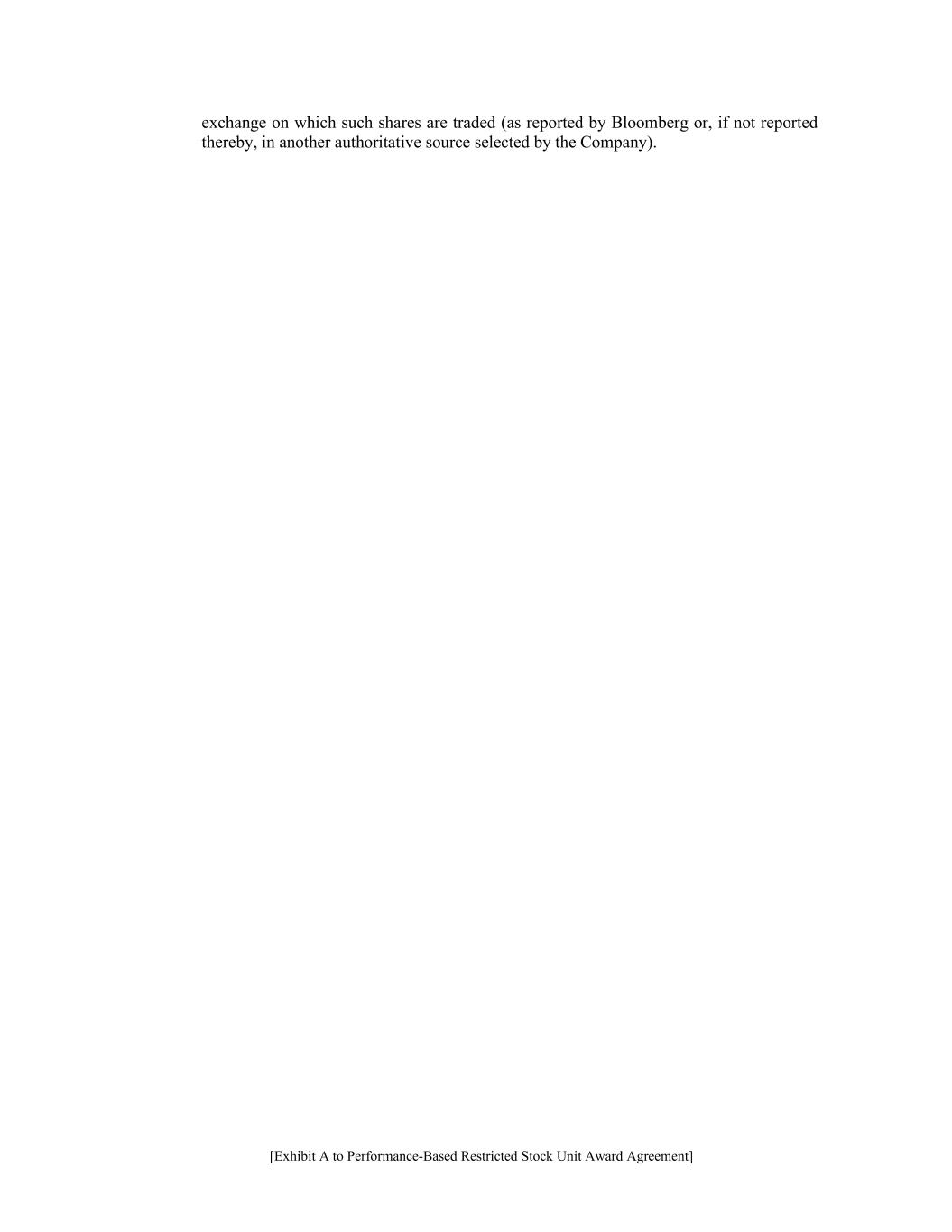 [Exhibit A to Performance-Based Restricted Stock Unit Award Agreement] exchange on which such shares are traded (as reported by Bloomberg or, if not reported thereby, in another authoritative source selected by the Company).