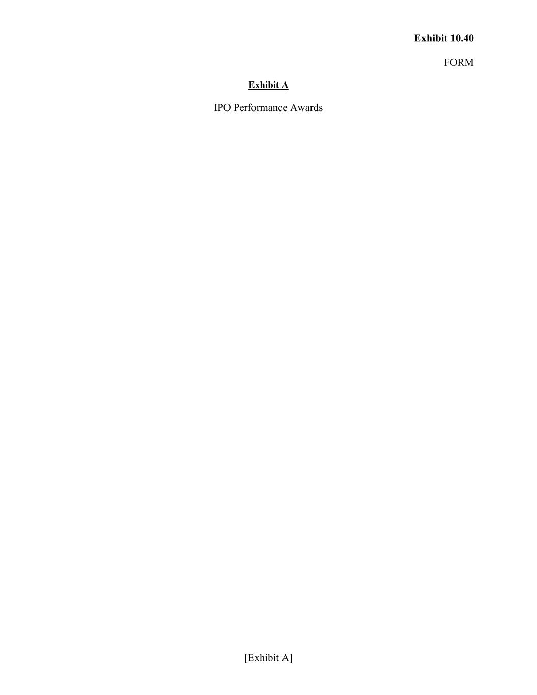 Exhibit 10.40 FORM [Exhibit A] Exhibit A IPO Performance Awards