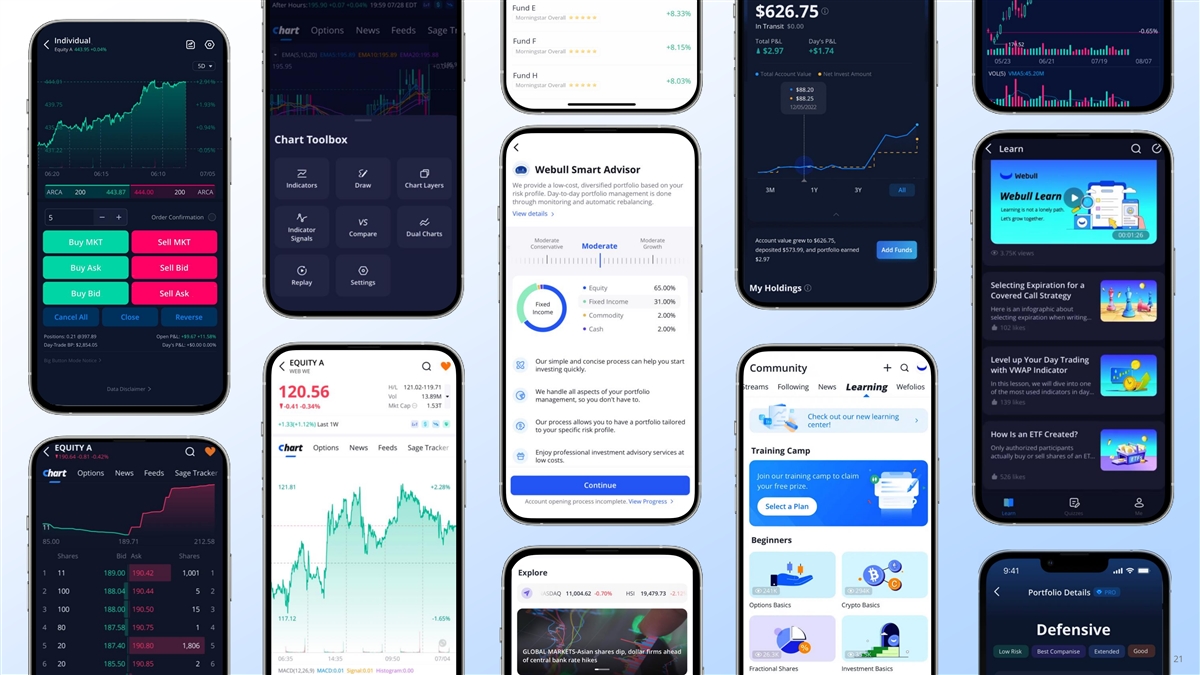 Webull is a leading digital investment platform built on next generation global infrastructure. The Webull Group operates in 15 regions globally and is backed by private equity investors located in the United States, Europe and Asia. Webull serves 20 million registered users globally, providing retail investors with 24/7 access to global financial markets. Users can put investment strategies to work by trading global stocks, ETFs, options and fractional shares, through Webulls trading platform. Learn more at https://www.webullcorp.com/.