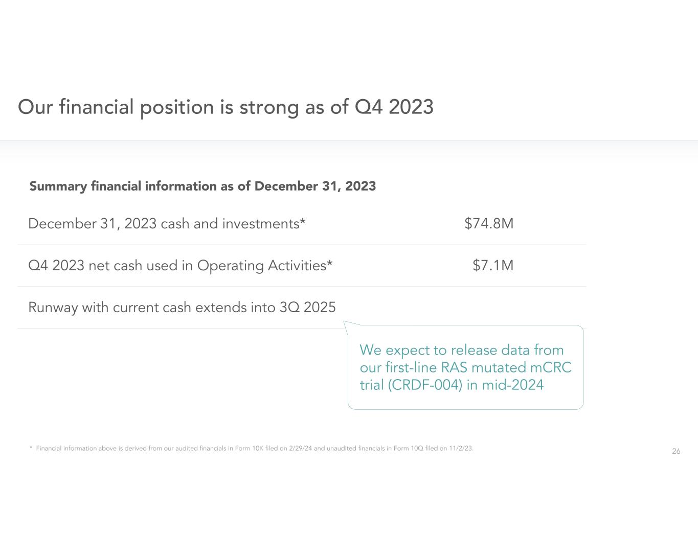- Interim topline data from first-line RAS-mutated mCRC trial is expected in mid-2024 -